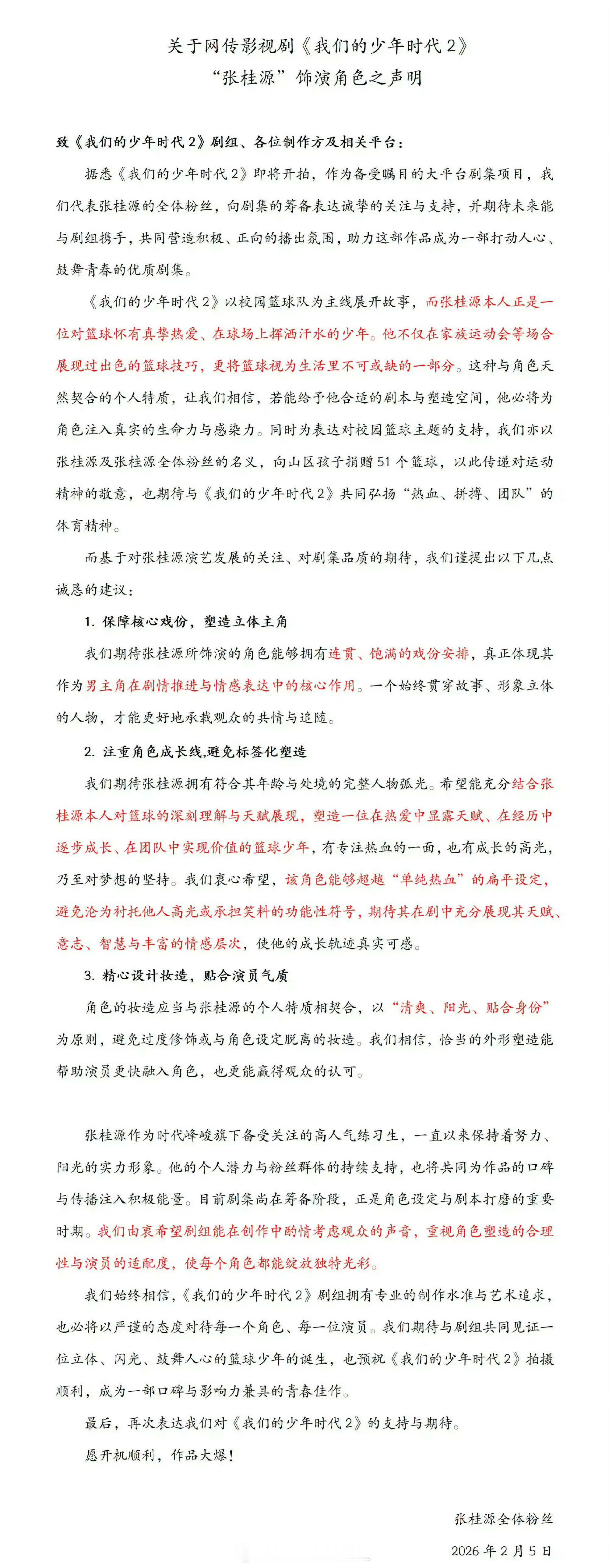 张桂源 左奇函粉丝发文:关于网传《我们的少年时代2》饰演角色之声明