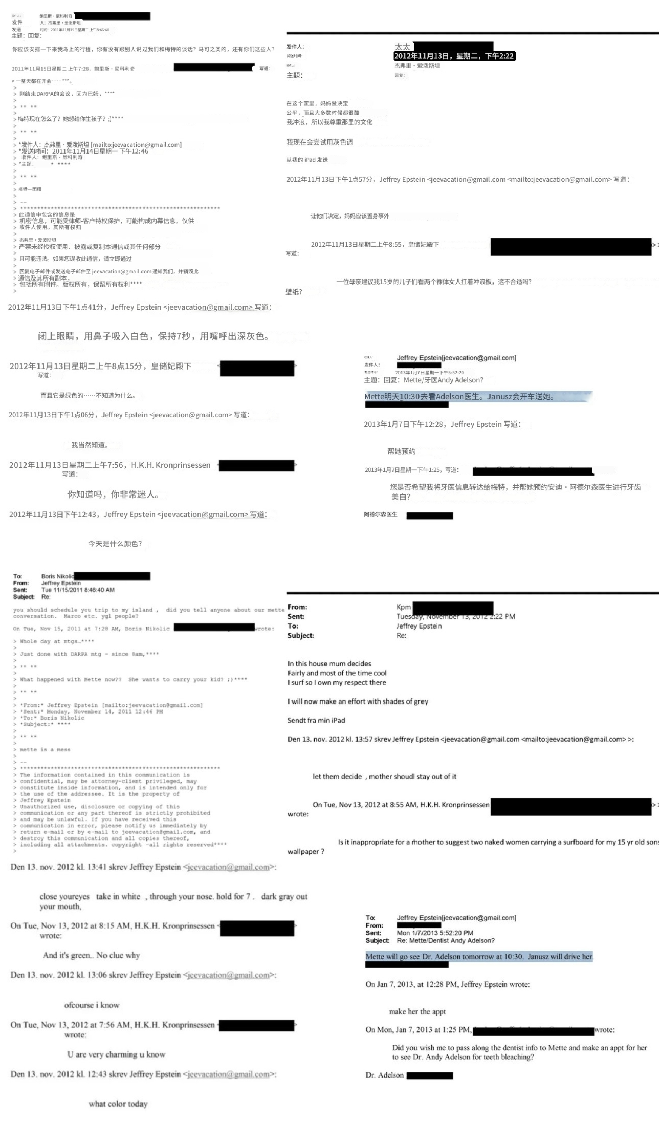 爱泼斯坦档案中的照片,挪威王储妃梅特·玛丽特坐在爱泼斯坦家中的沙发上,想给爱泼斯坦生孩子,询问爱泼斯坦是否应该给他儿子看裸女壁纸,曾带着孩子去找爱泼斯坦……