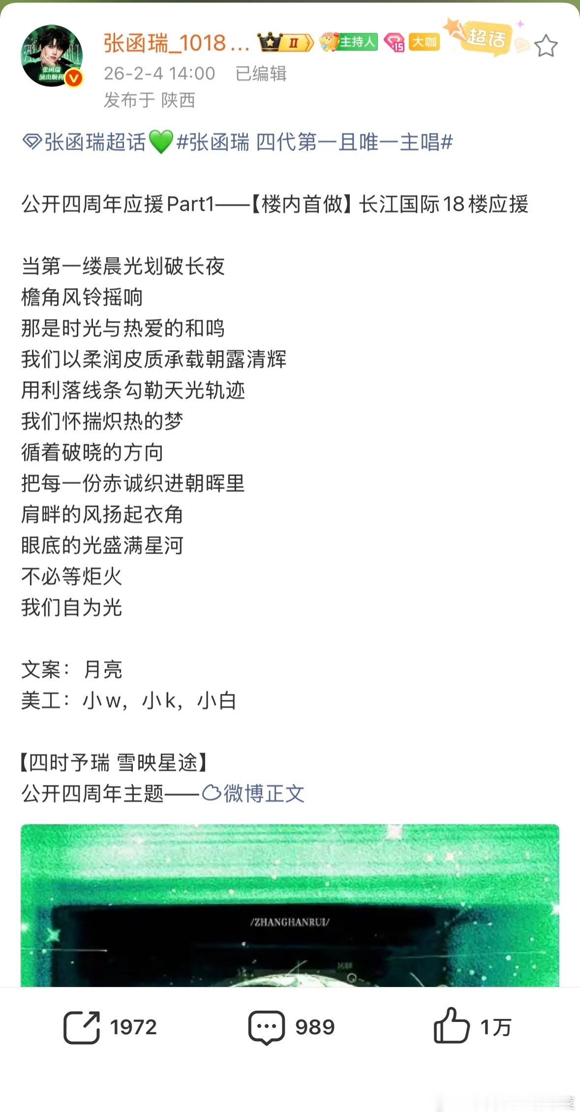 tg看时间张函瑞家才是楼内首做长江国际应援哦,包了一年大屏不只一天哈~
