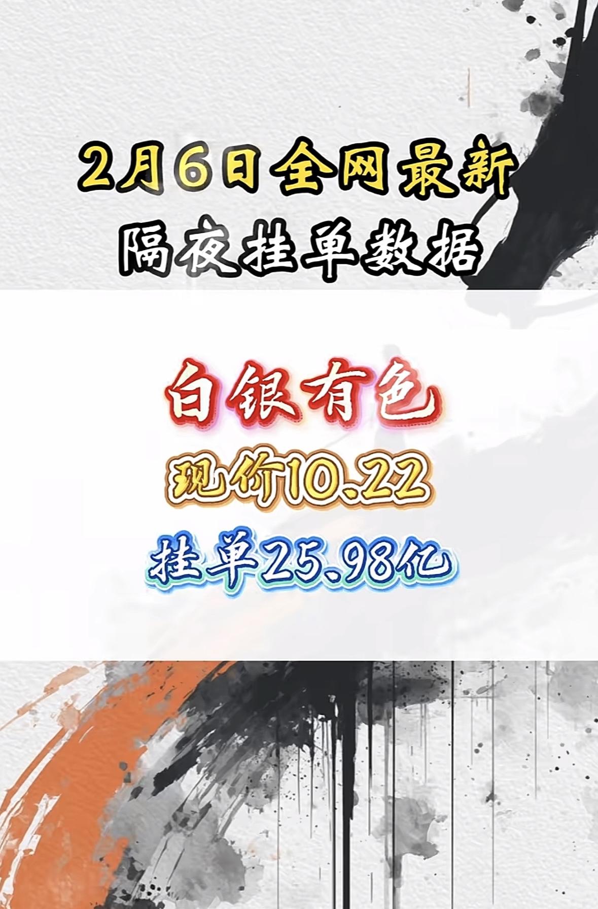 2月6日全网最新白银价格,现价10.22,挂单25.98亿! 航天发展隔夜挂单