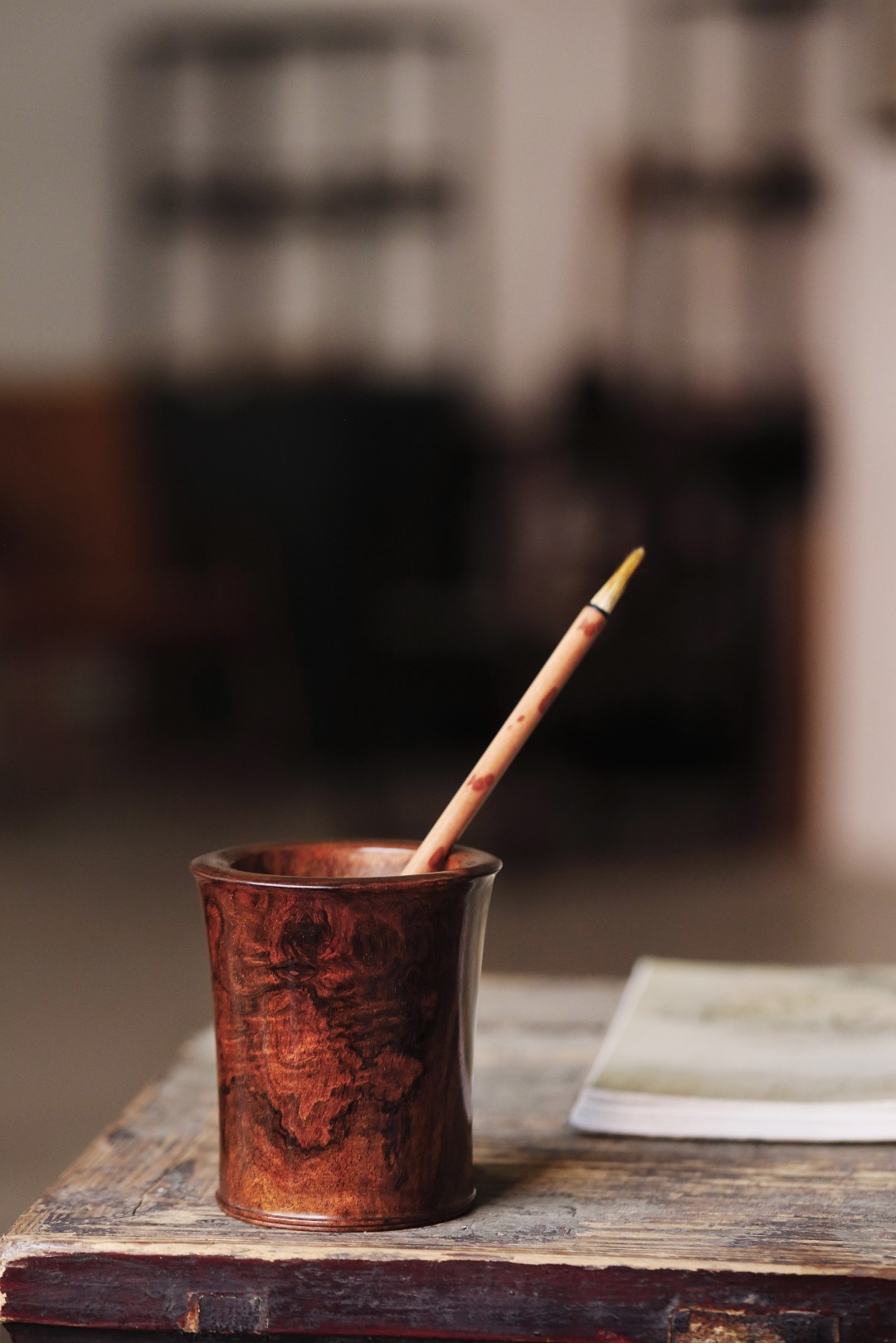 黄花梨 | 笔筒 极品老料,周身光素纹美质坚。整体造型端庄规整,简约雅致,尽显黄