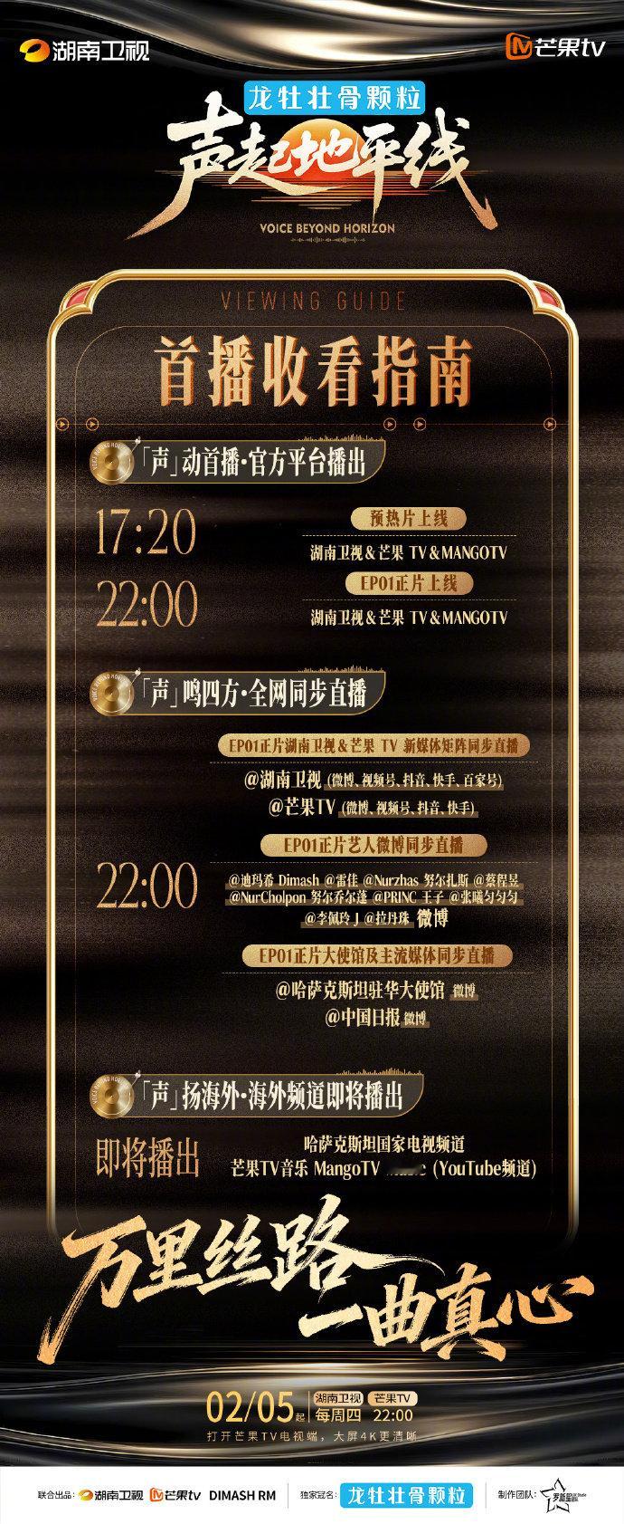 湖南综艺将登陆哈萨克斯坦国家电视台终于等到《声起地平线》开播!17:20 预热片先冲,22:00 正片锁定湖南卫视芒果 TV,还登哈萨克斯坦国家台,中哈同步听歌太燃了声起地平线