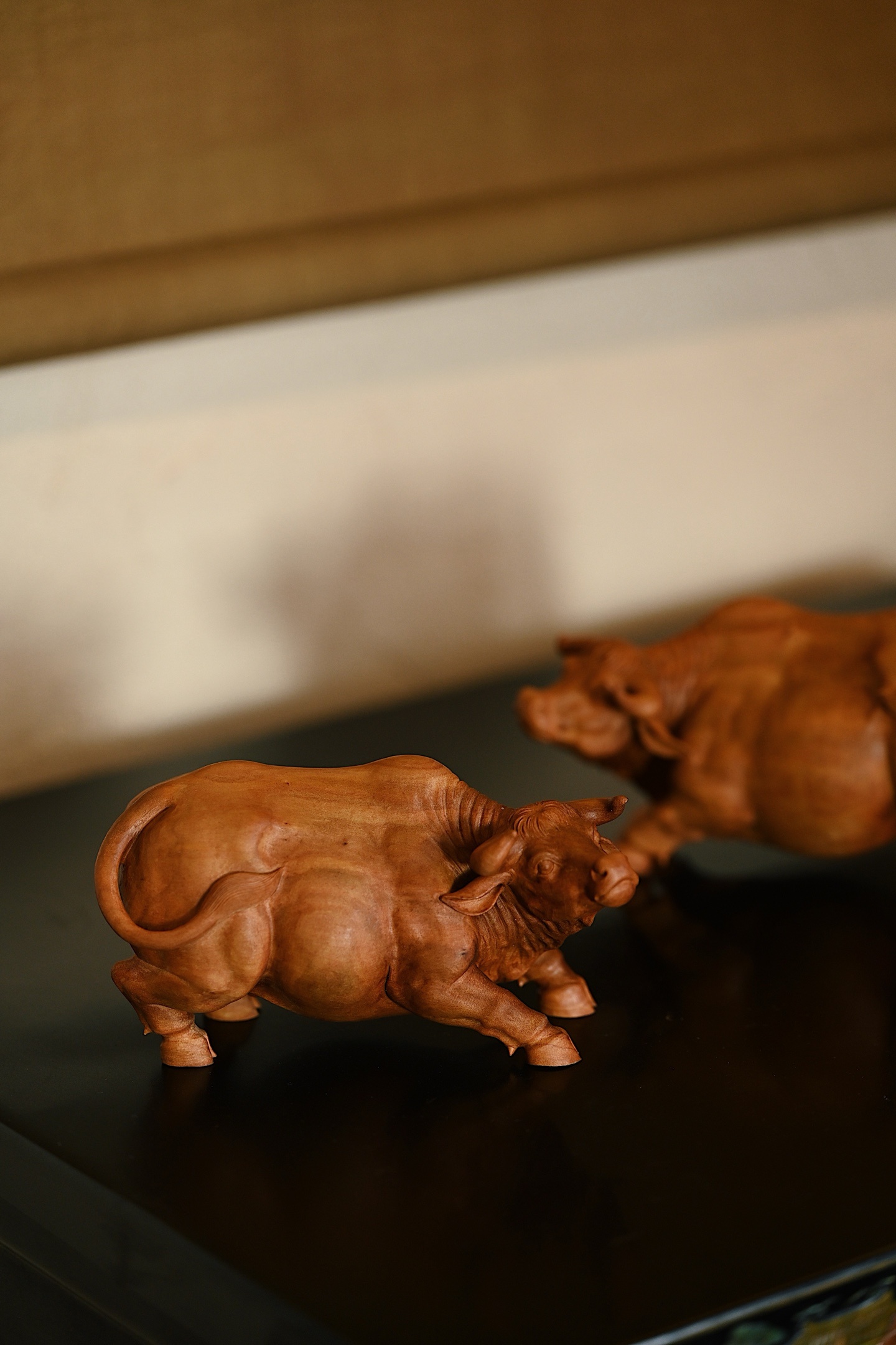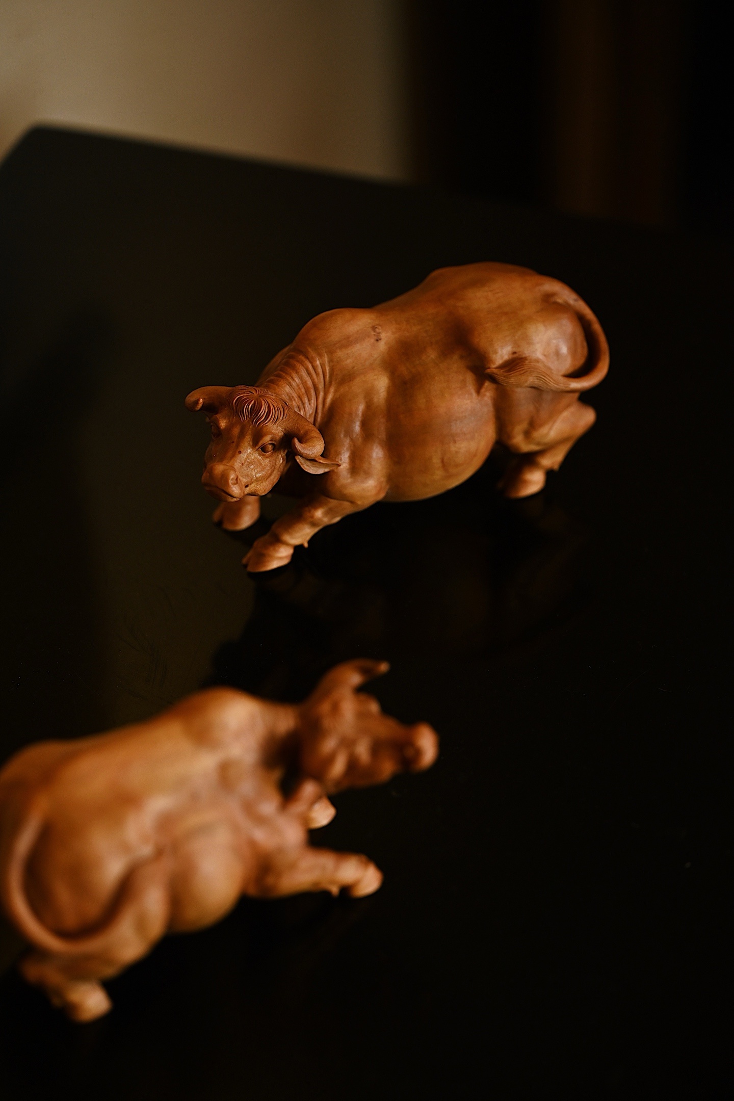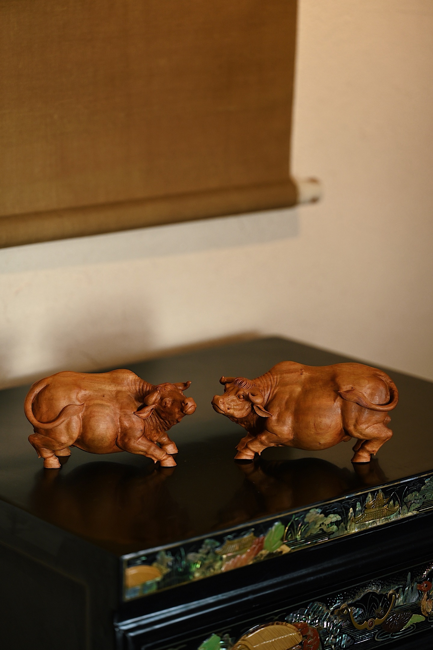 老山檀 | 牛运亨通 一对料质自然细腻,手工雕作,背脊巍然,肌骨饱满,力量感十足