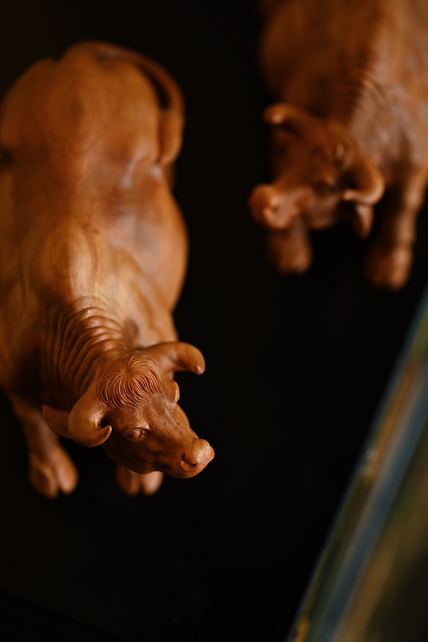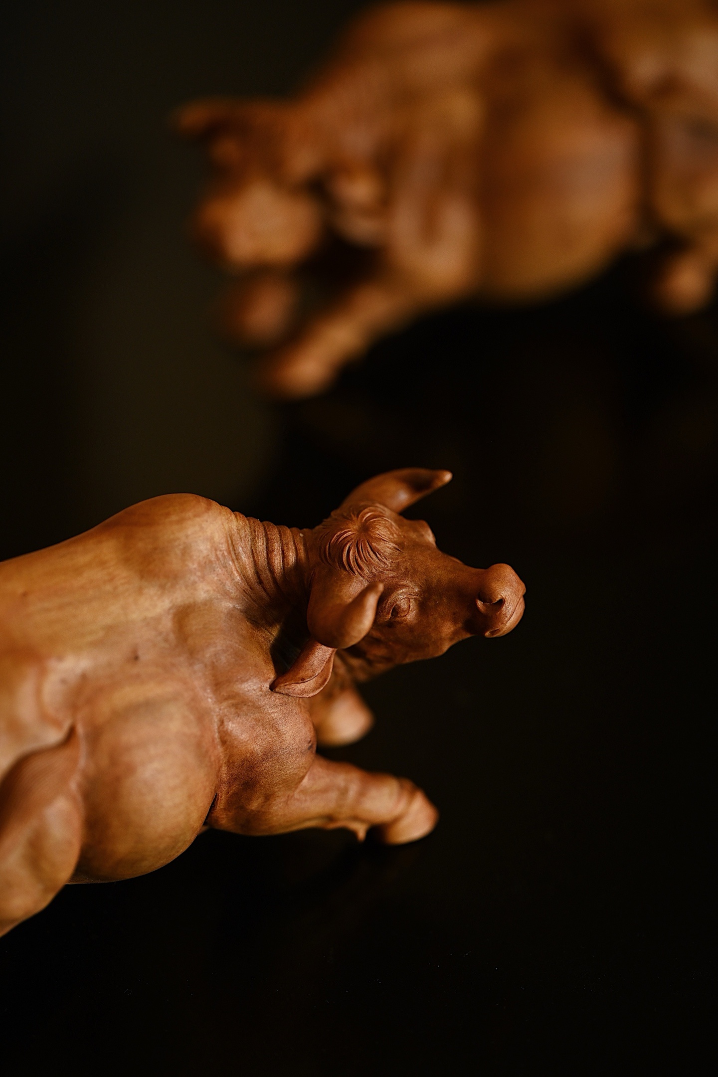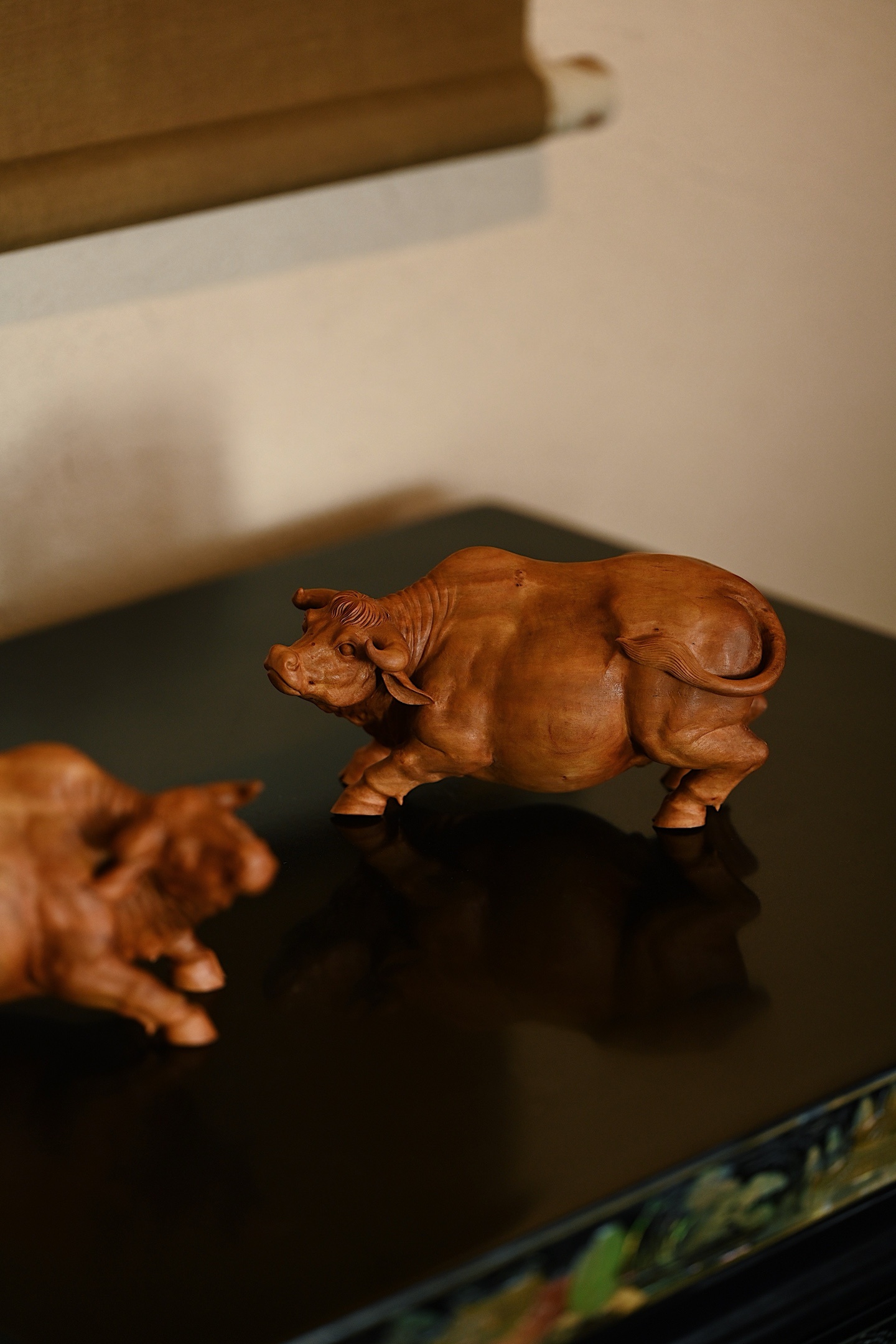 老山檀 | 牛运亨通 一对料质自然细腻,手工雕作,背脊巍然,肌骨饱满,力量感十足