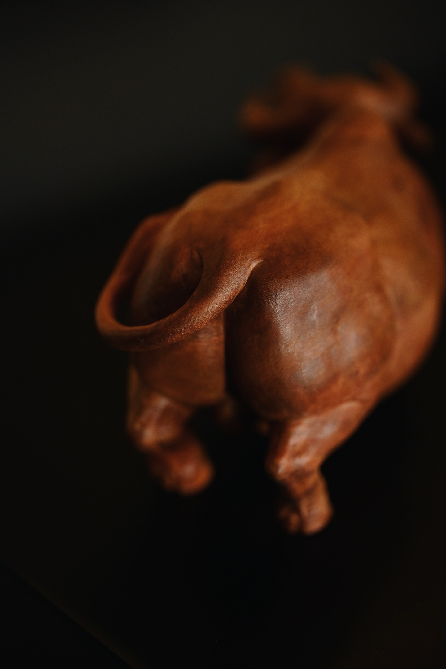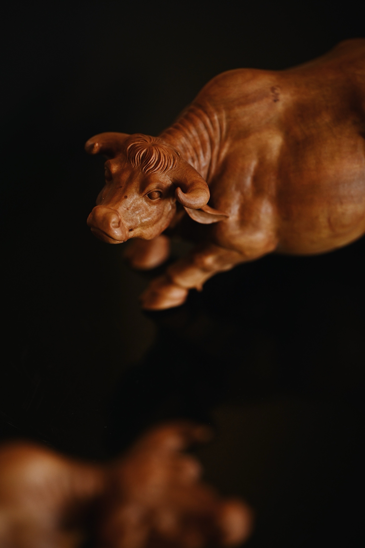 料质自然细腻,手工雕作,背脊巍然,肌骨饱满,力量感十足,匠心独具,案头陈设造景,祝颂牛运亨通,势不可挡。
