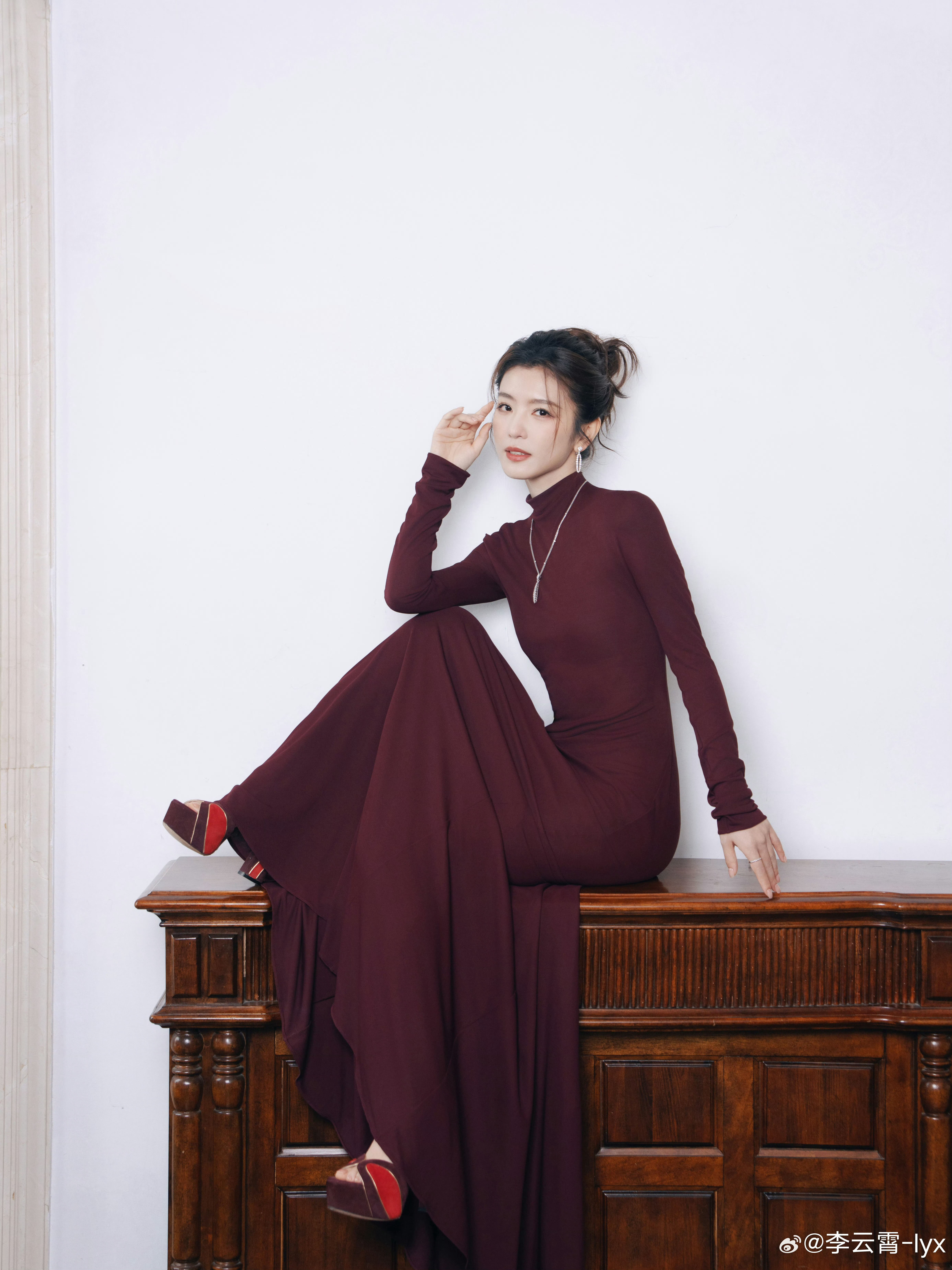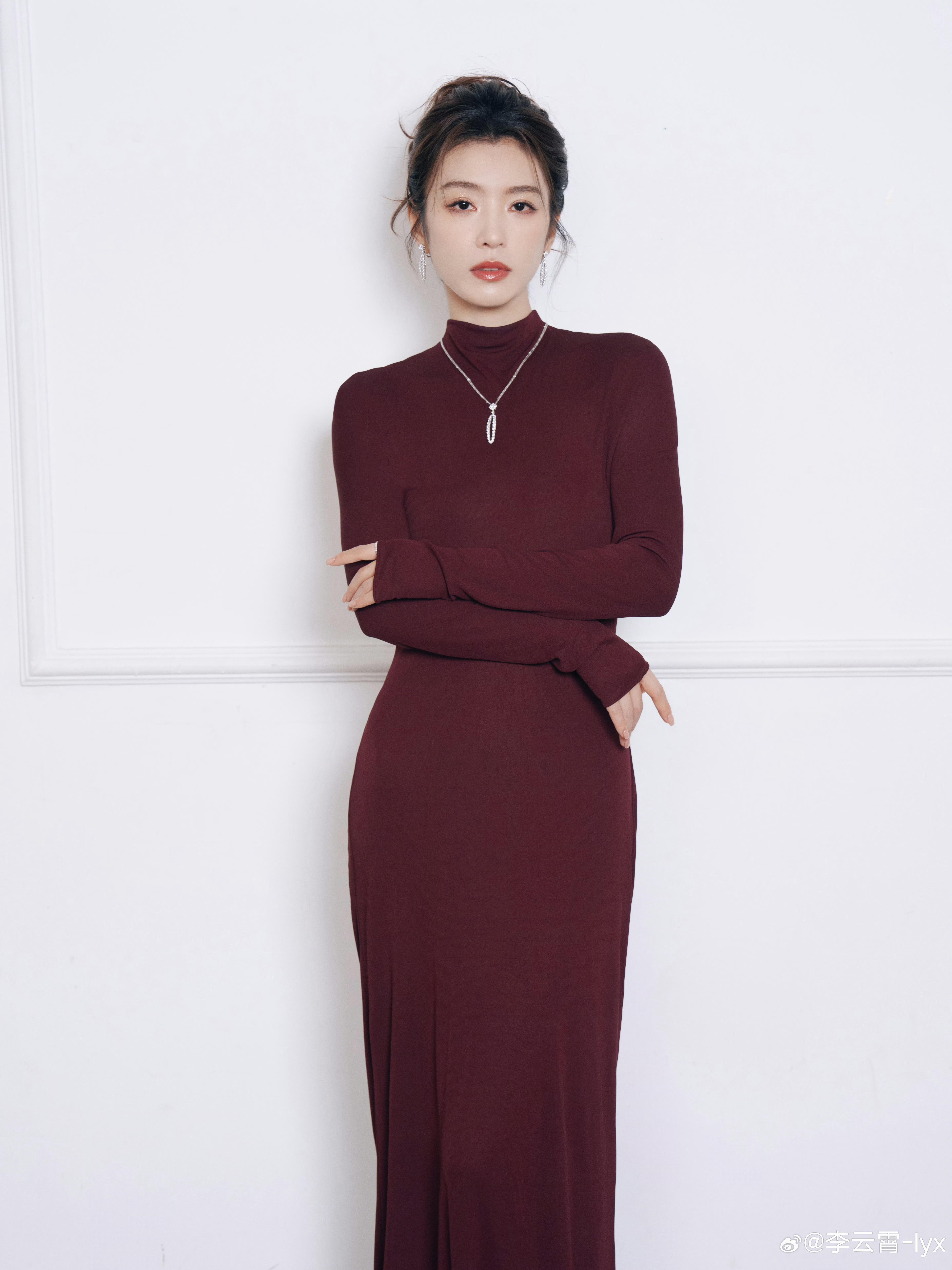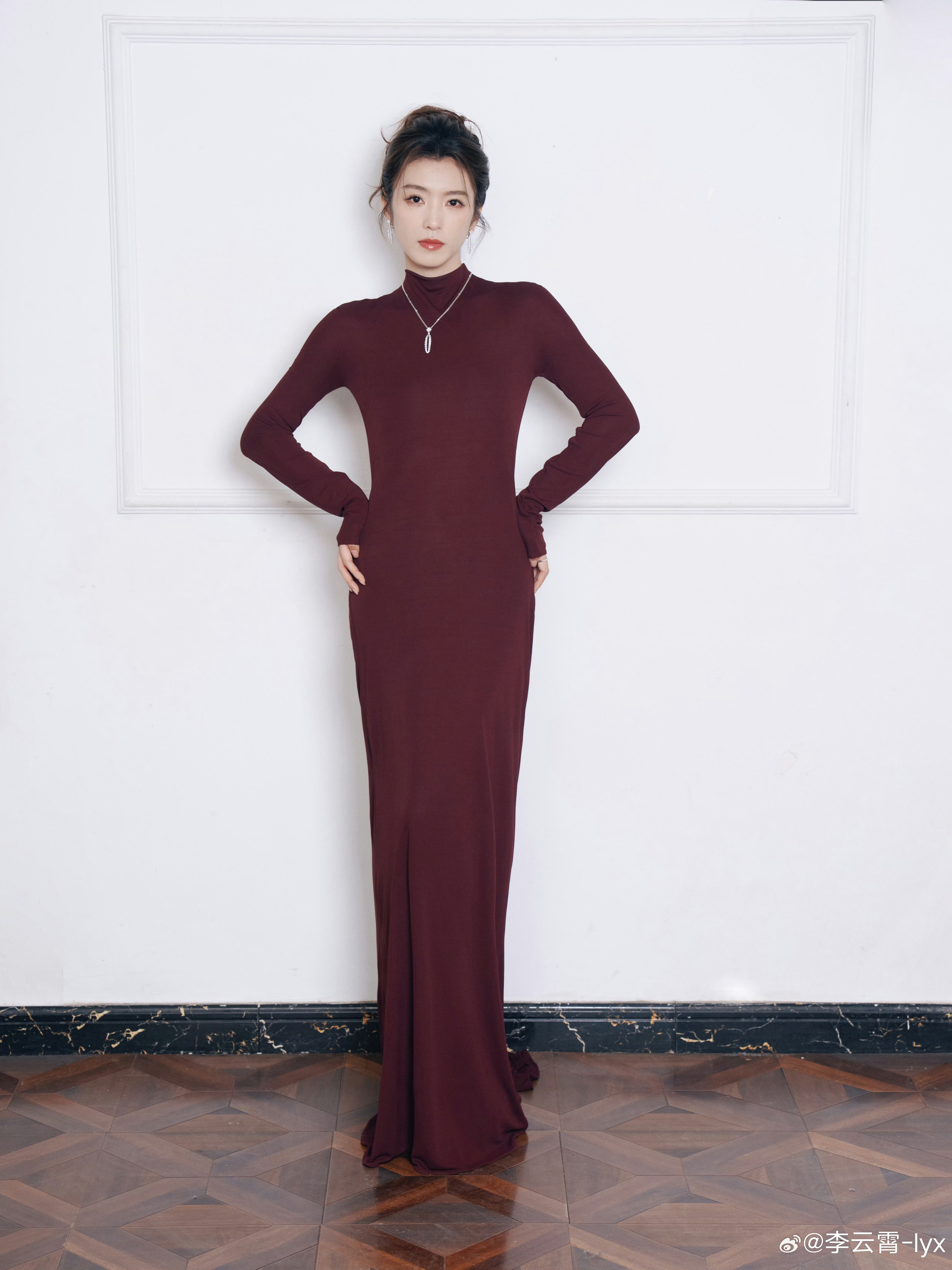 李云霄 × 微博之夜 今日微博之夜大第二套Look,一袭 ALAIA 酒红连衣长