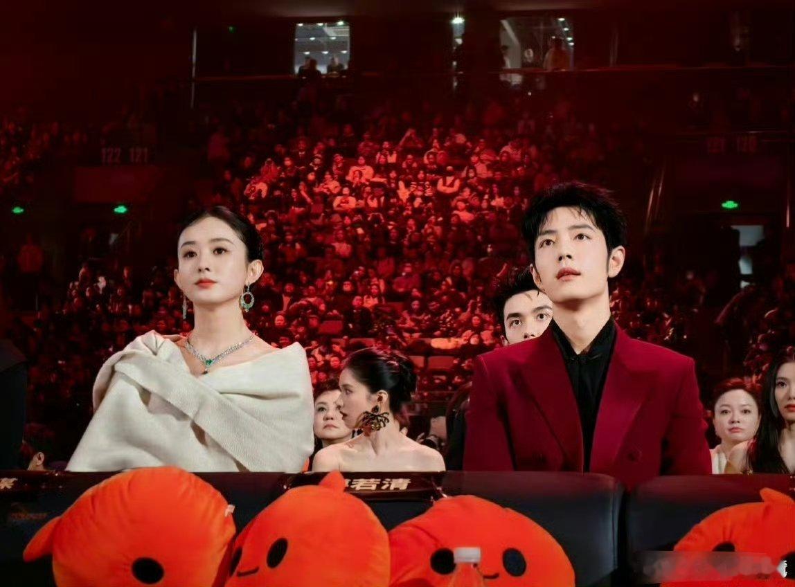 去年的微博之夜内场,全场明星几乎都坐满了其乐融融,肖战和赵丽颖是挨着坐的,今年看