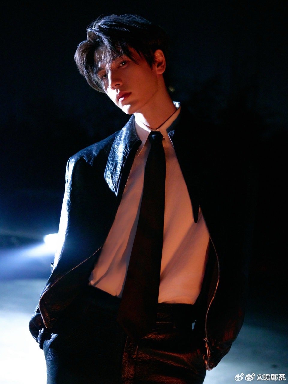 张凌赫转身盯镜头 转身时头发和衣摆都有微微的浮动感,配上那个专注的眼神,画面一下