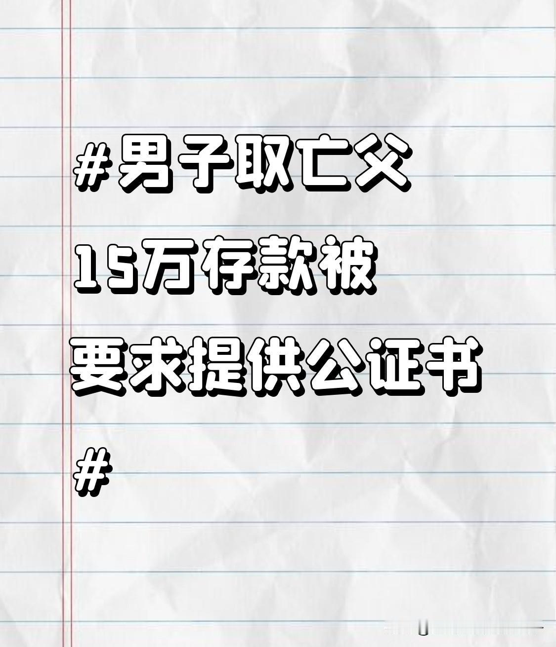 男子取亡父15万存款被要求提供公证书 2月5日江西九江这事儿太让人无语了。一男子