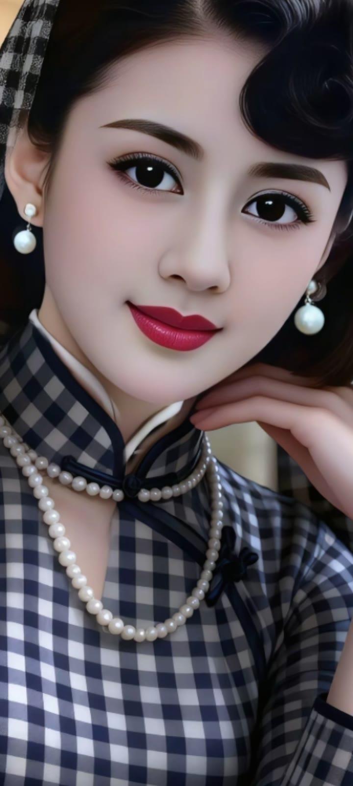复古风穿搭,珍珠项链与格子衬衫的完美搭配,优雅又迷人!👗✨