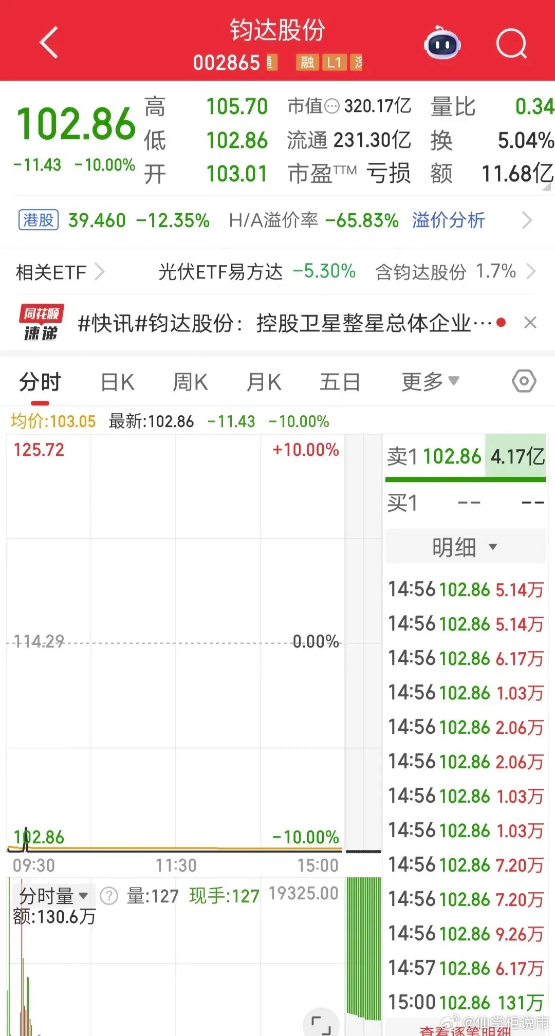 1秒跌停,46亿资金被埋!钧达股份昨天尾盘还在抢筹,结果今天开盘秒跌停。让人大跌