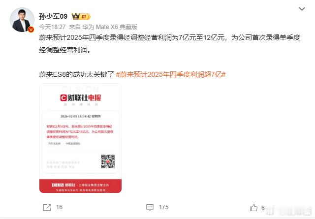 终于,蔚来汽车盈利了,是自创立11年以来首次单季度盈利,李斌兑现了他此前的诺言。