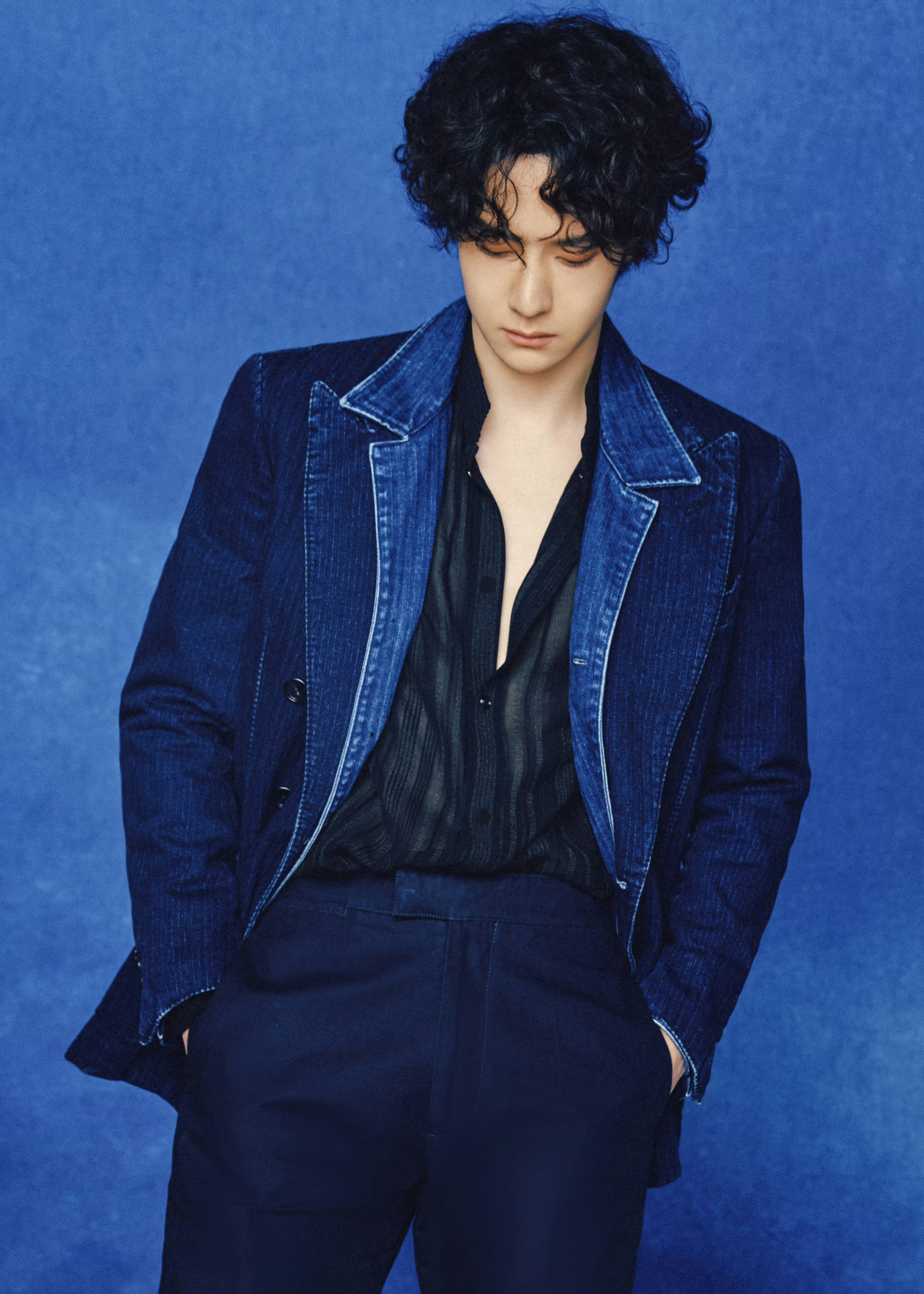王一博 x 微博之夜 第二套造型图来了!身穿来自Tom Ford深V蓝色牛仔西装出镜🩵