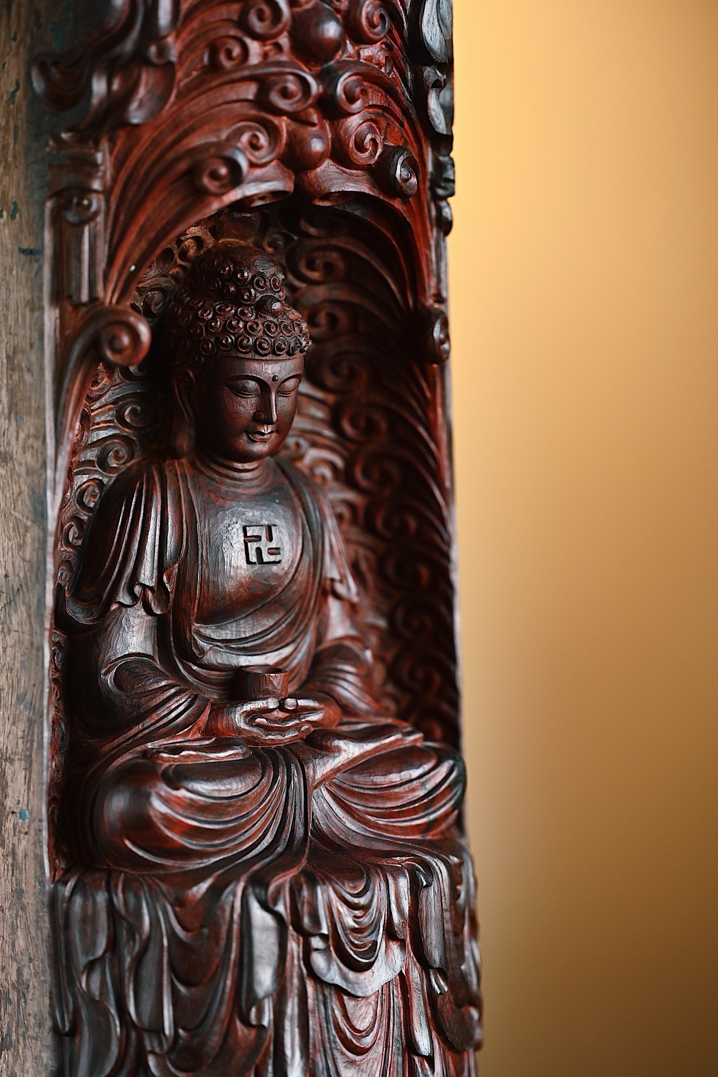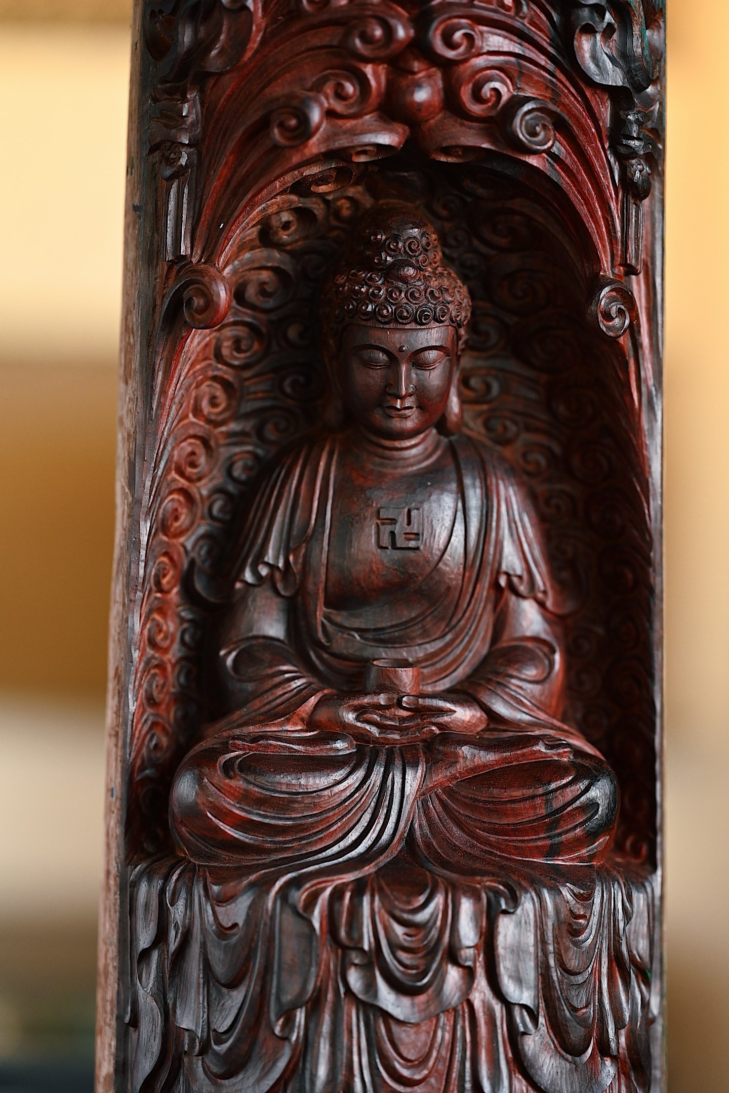 小叶紫檀 | 释迦牟尼 摆件选材拆房老料,皮壳细腻,雕刻生动,释迦牟尼雍容大度,