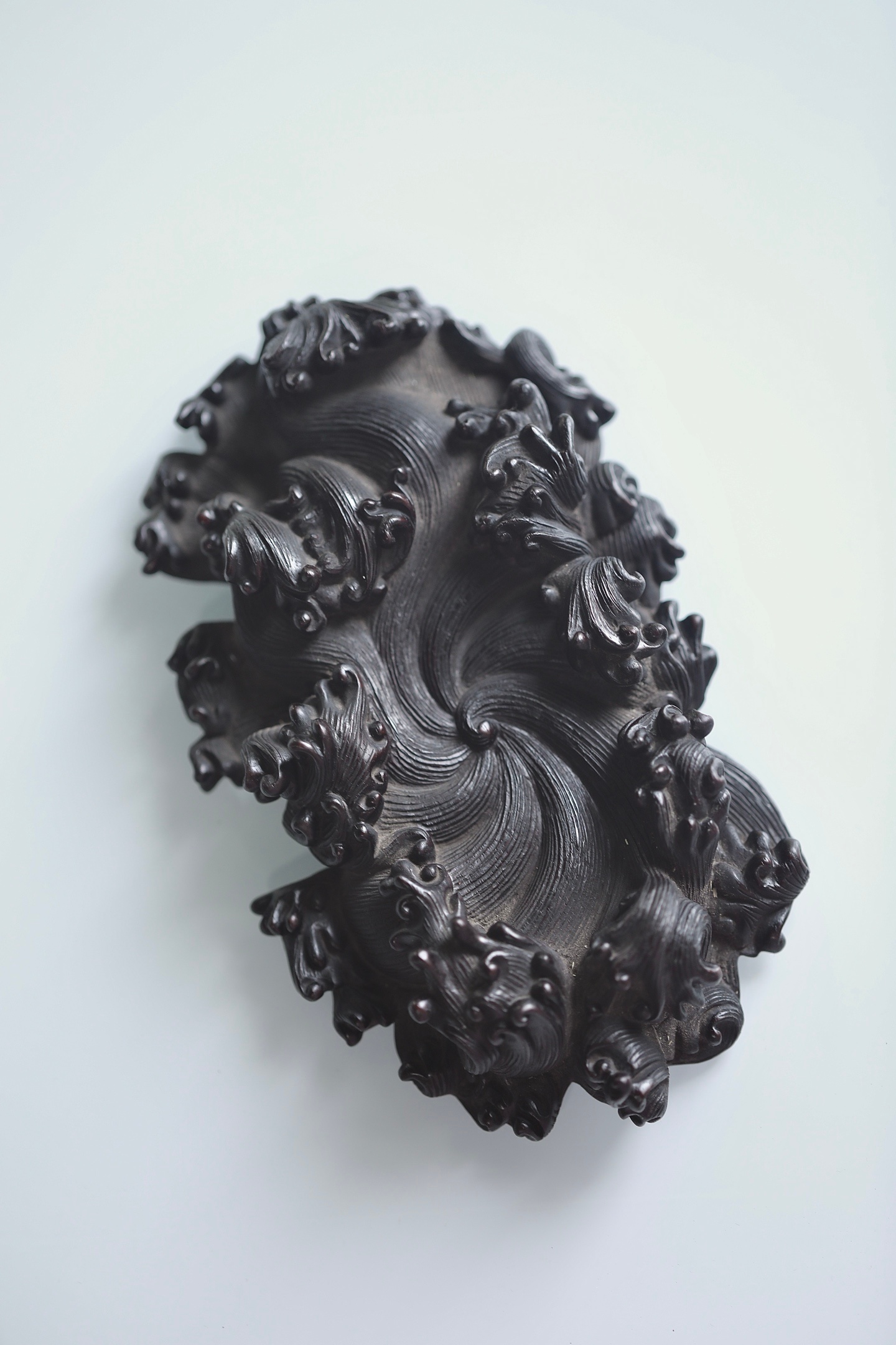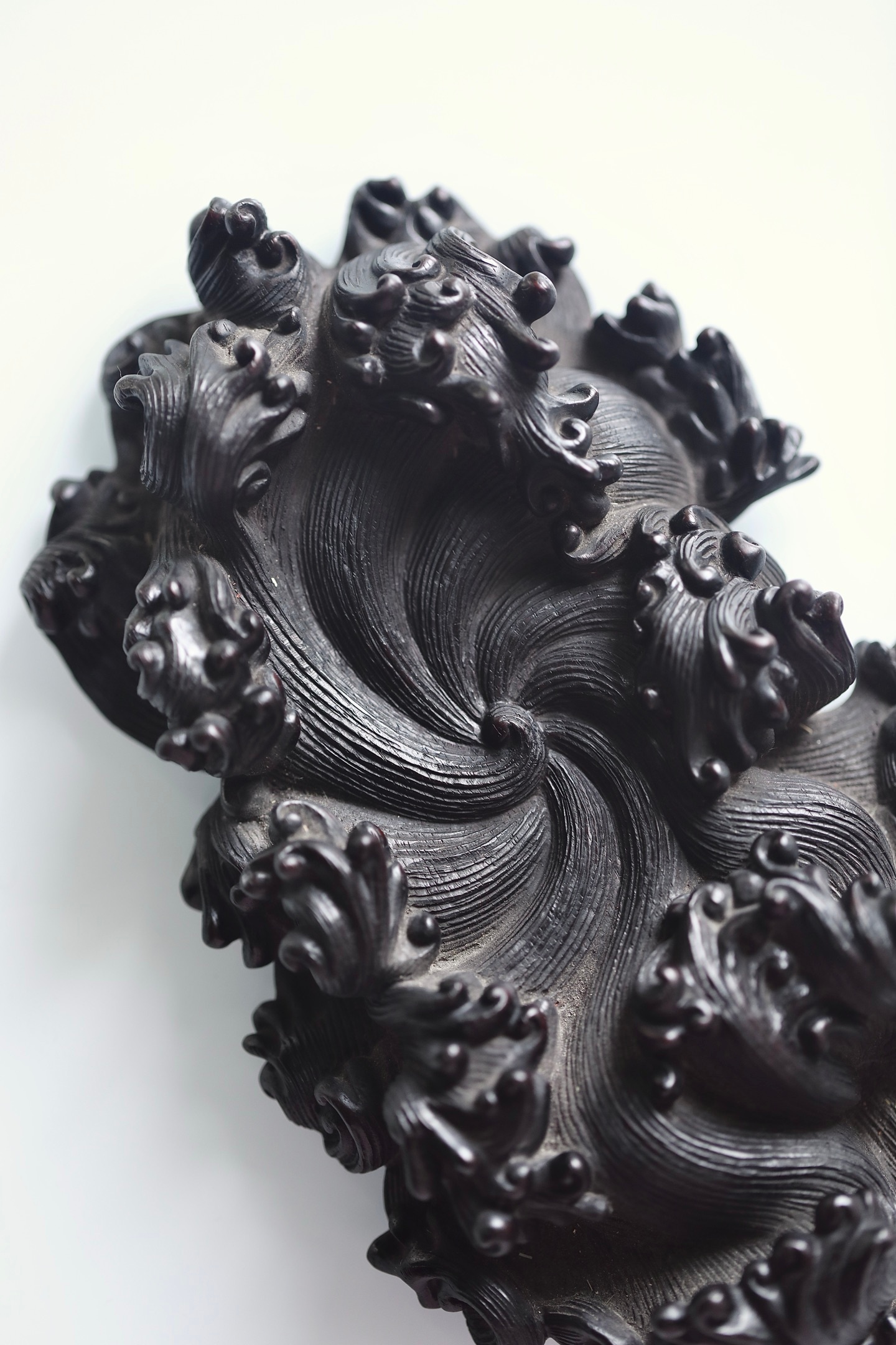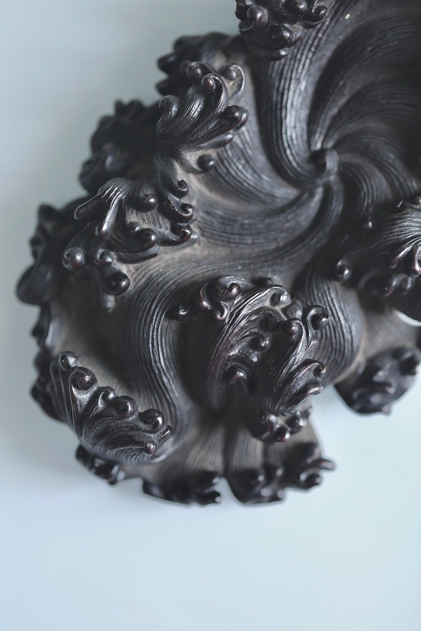 血檀 | 浪花底座底座依木之天然形态雕琢,浪涛翻卷,浪花灵动,背面纹理如扇面舒展