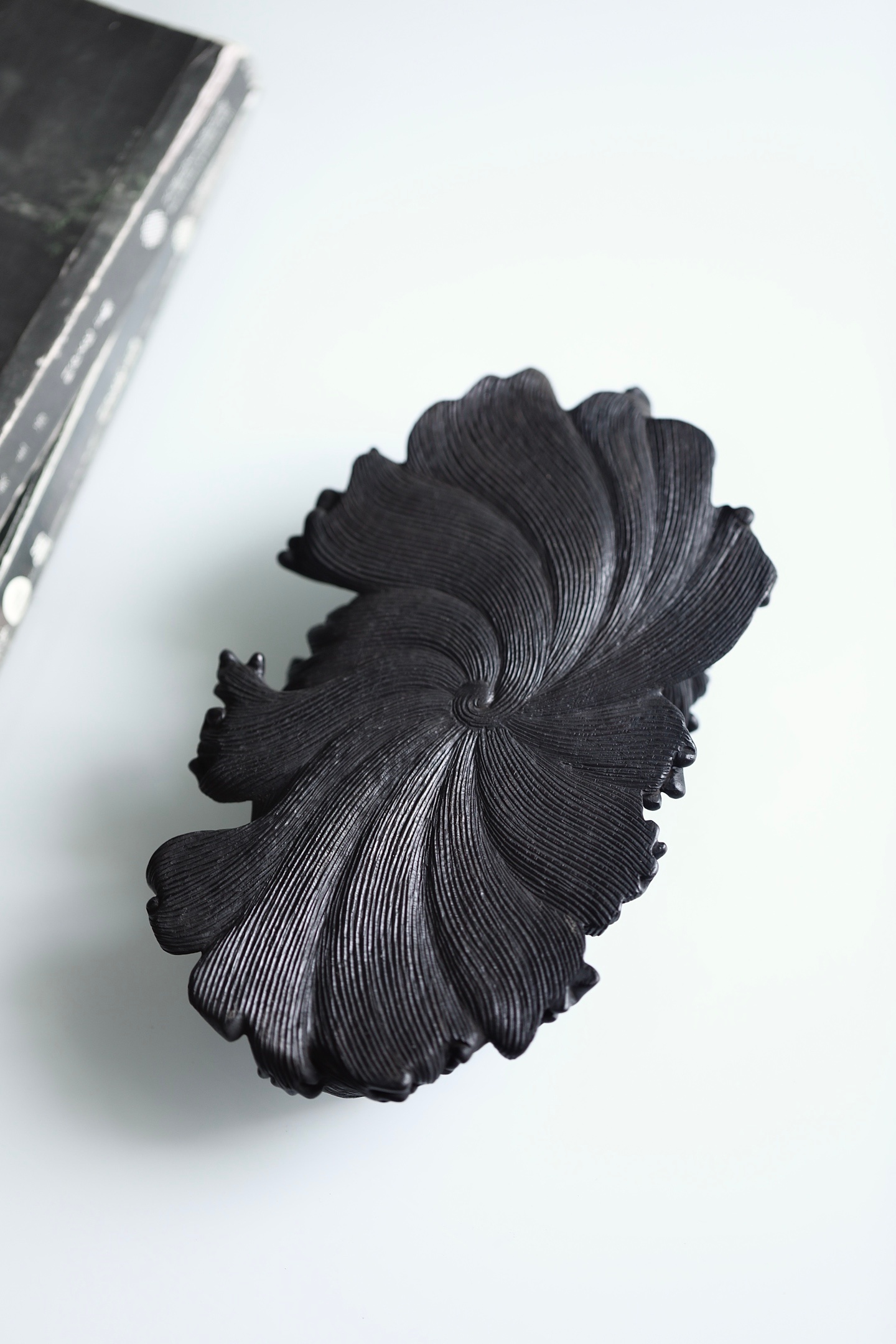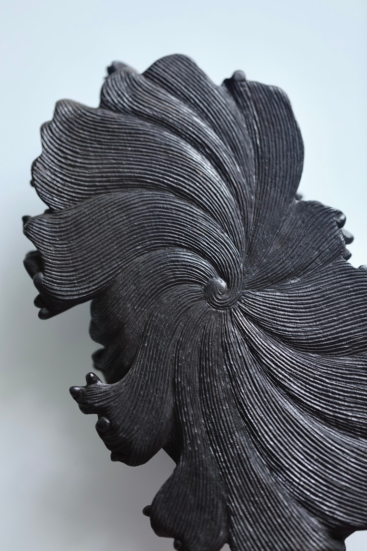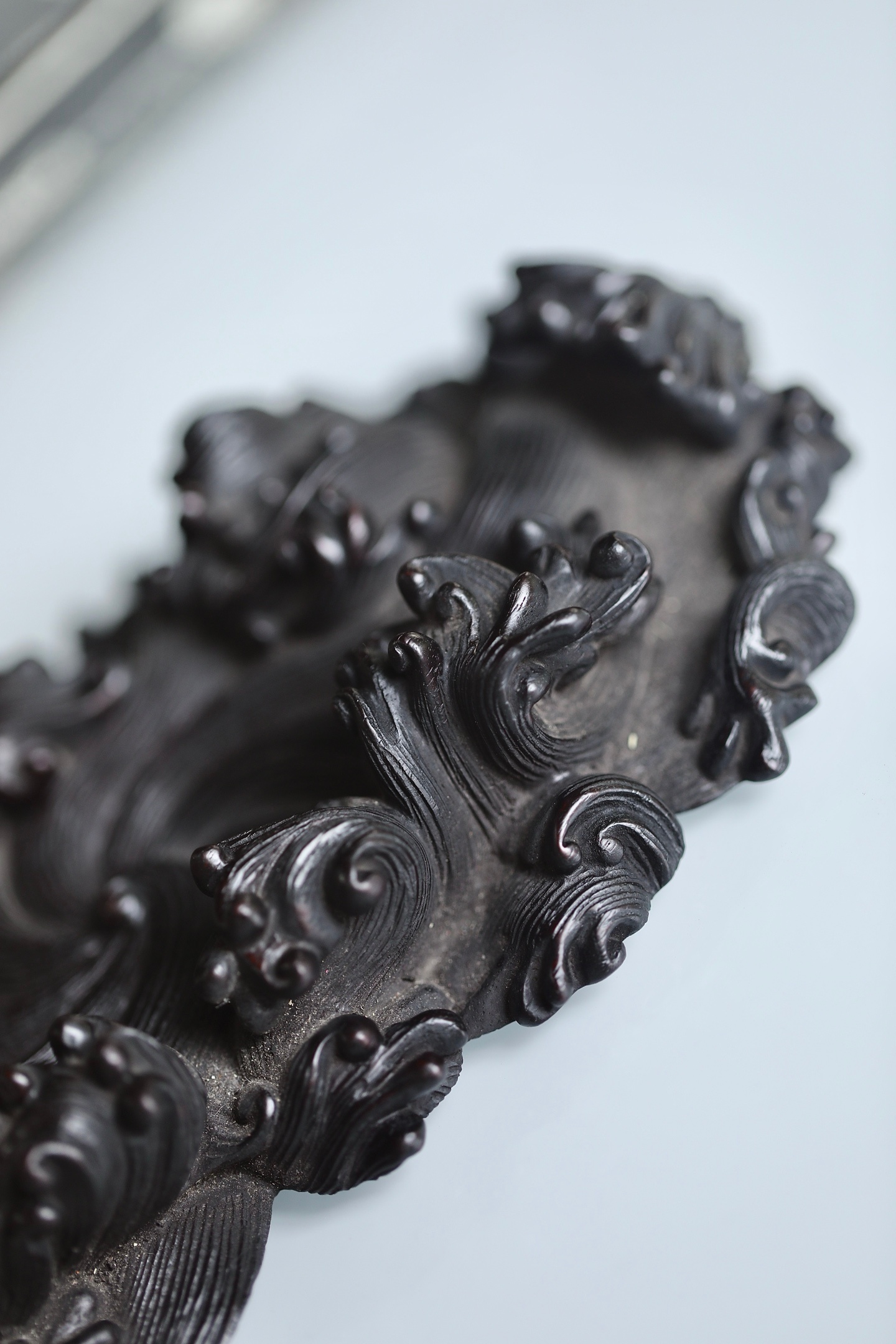 血檀 | 浪花底座底座依木之天然形态雕琢,浪涛翻卷,浪花灵动,背面纹理如扇面舒展