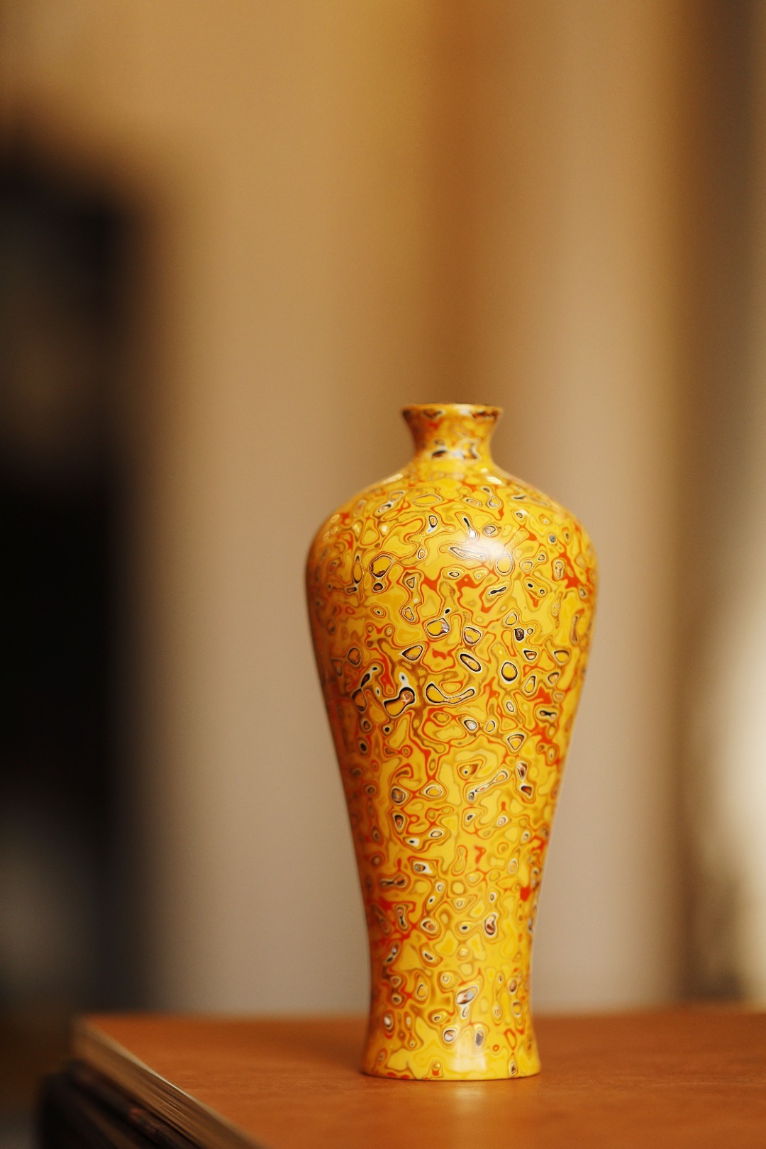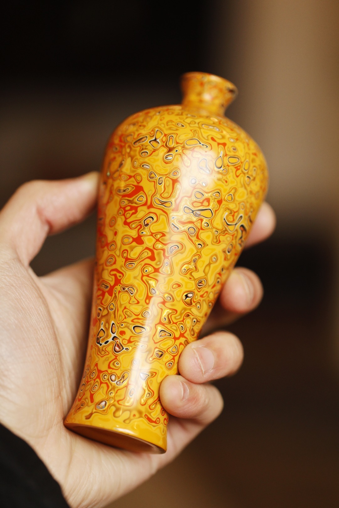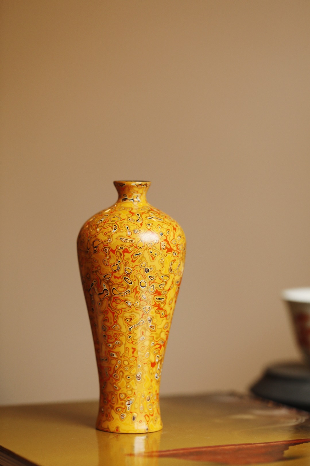 大漆·琥珀黄 梅瓶承循传统非遗工艺,髤饰犀皮漆;入案头增色添彩,历久弥新。6.4
