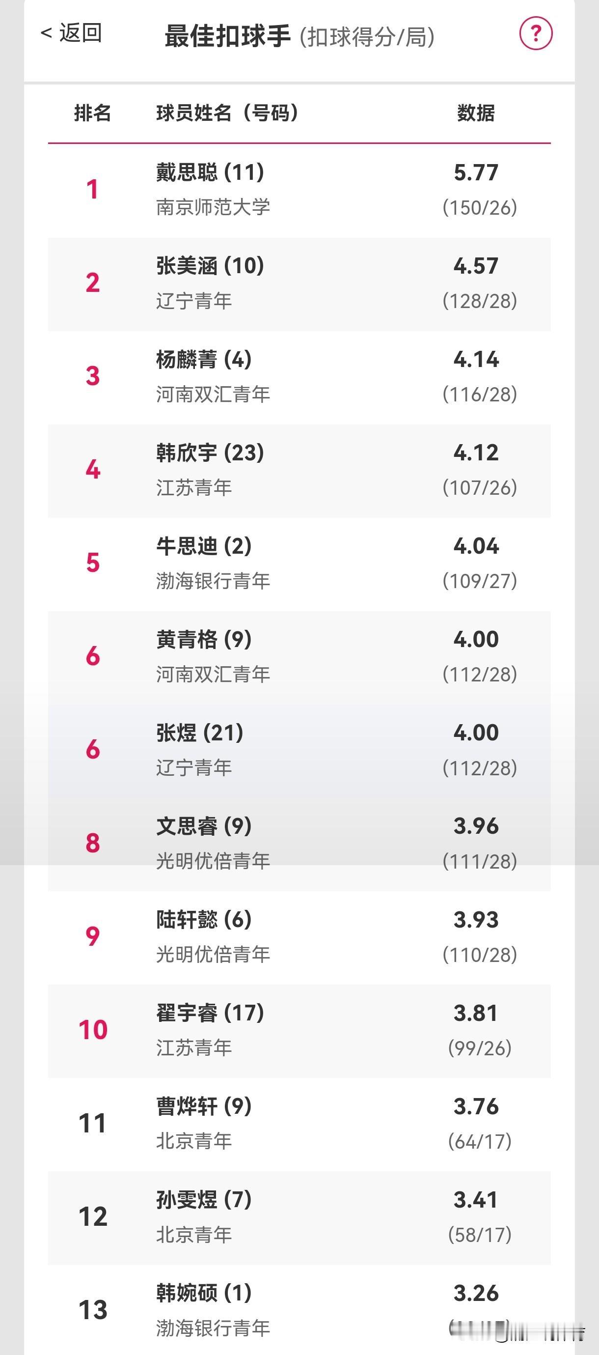 天津青年女排虽遭淘汰却收获14岁江苏小将牛思迪。天津青年女排以0胜7负淘汰出局,无缘晋升本赛季排超B级联赛。不过出生2011年的牛思迪表现不俗,在总得分环节,她以120分总得分并列得分榜第9,而韩婉硕排名第11。在局均得分环节,牛思迪以4.04分排名第5,另一名天津大将韩婉硕排名第13。这也可以看出,才接触排球不过4年的牛思迪已具备了不错的得分能力,但是在综合保障能力上还有所不足。值得一提的是,听说牛思迪是江苏出品,她爸爸是江苏人,妈妈是天津人,而她本人出生于江苏,在天津成长、求学、打球。