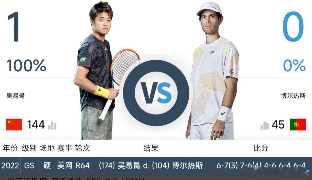 14:00左右 戴维斯杯世界一组附加赛吴易昺🇨🇳 vs 博尔热斯🇵🇹