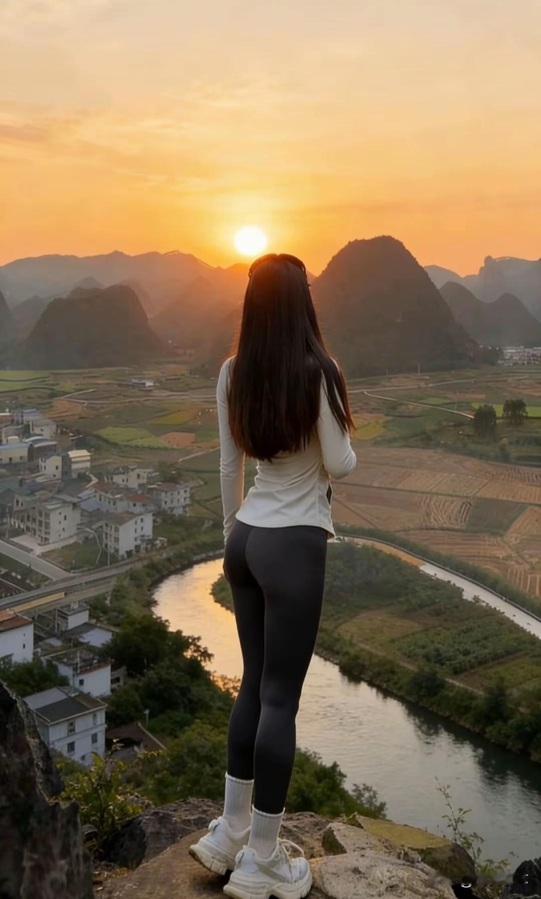 黑衣紧束纤腰细,背影横空凝睇。荒丛露冷沾罗袜,远树风清,独向青山立。~发曳