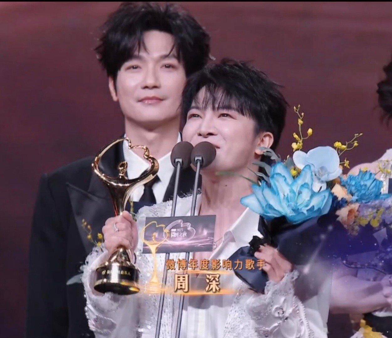 生活手记奖杯上是年度音乐人,字幕年度歌手, 致辞影响力歌手。这三个奖都是他的就对了周深微博年度影响力歌手
