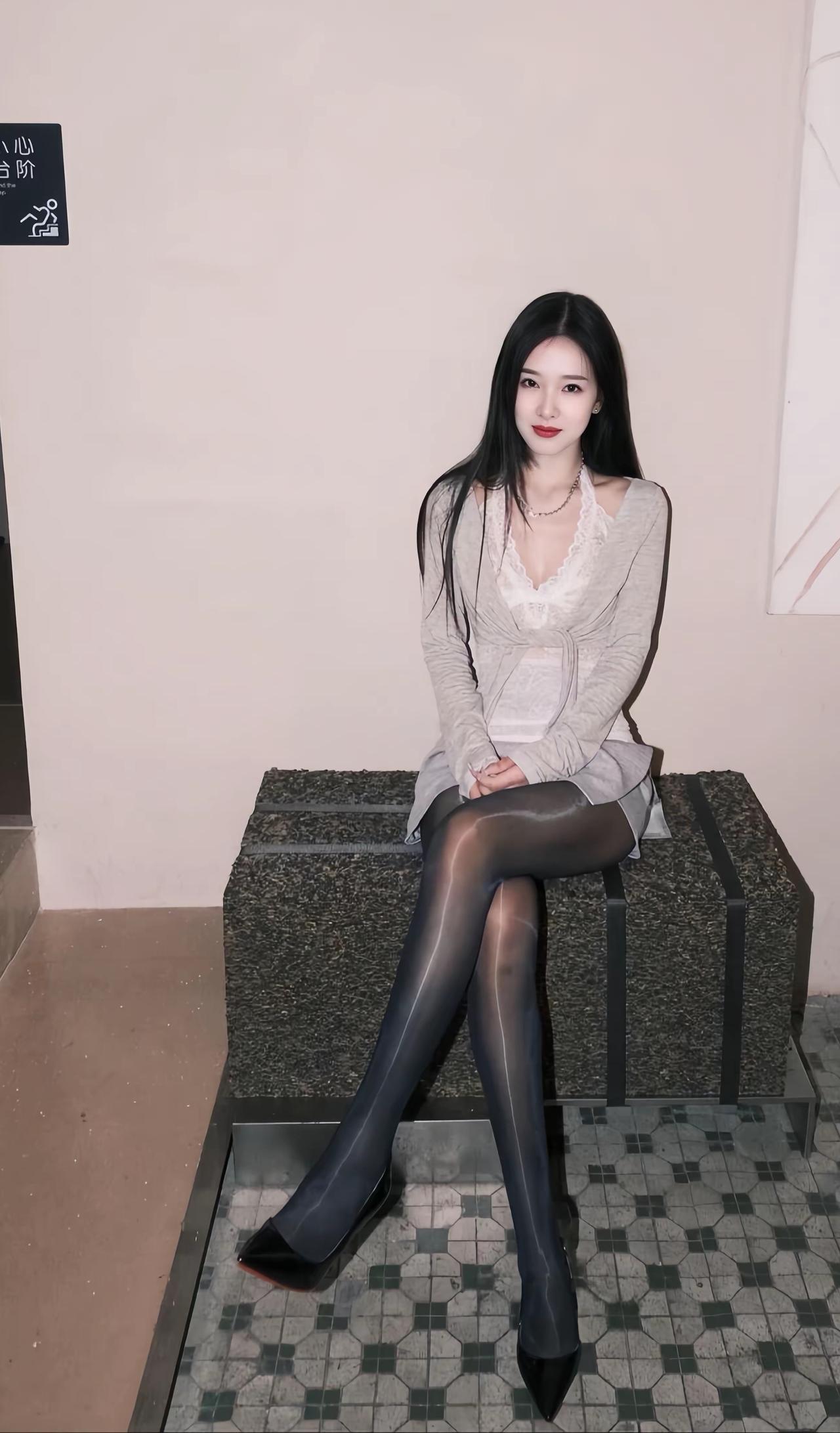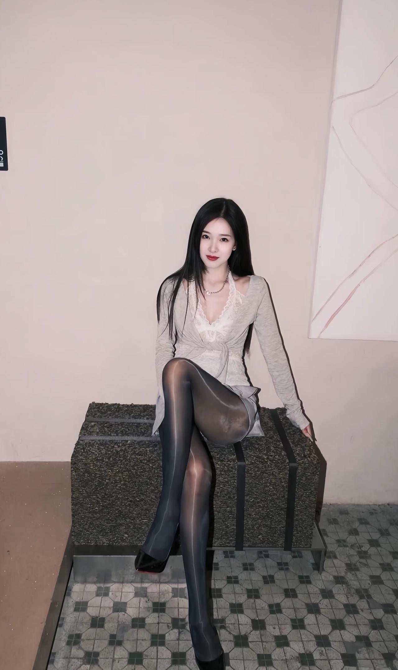 灰色针织衫搭配黑丝袜,元气感少女穿搭穿搭如何穿搭会具有少女软妹感纯真少女感穿