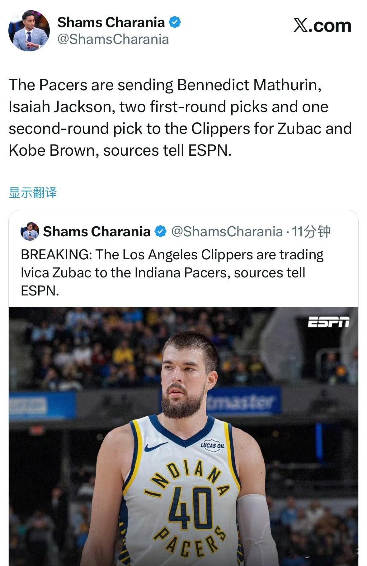 快船交易祖巴茨,得到马瑟林,以赛亚-杰克逊和选秀权! 根据记者Shams最新消息透露,步行者和快船达成交易协议,他们送出马瑟林、以赛亚-杰克逊、两个首轮选秀权和一个次轮选秀权至快船队,得到祖巴茨和科比-布朗, 这和我们昨天报道的消息是基本一致的,快船如果交易祖巴茨,那么下家基本上确定会是步行者,没有任何悬念,这次交易也证实了我们是准确的。 具体详细的交易方案如下: 快船得到:马瑟林,以赛亚-杰克逊,步行者2029年无保护首轮签和2026年首轮签(前4顺位及10-30顺位受保护;若2026年未兑现,则转为2031年首轮签),独行侠2028年次轮签。 步行者得到:祖巴茨和科比-布朗。 这样交易就全乎了,双方各取所需,步行者一直希望得到一名内线中锋,最开始他们的目标是凯斯勒,但是从安吉手里拿不到,于是他们不得不选择祖巴茨。快船 快船队 祖巴茨