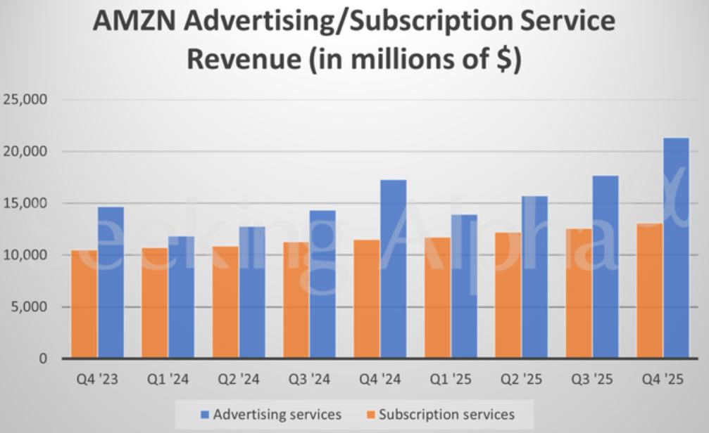在繁忙的假日季,亚马逊的广告业务依然是亮点。亚马逊的广告收入增长了23%,达到213亿美元,略高于预期。投资者密切关注亚马逊广告业务的增长率,因为这有助于提高这家在线零售企业的盈利能力。贾西表示,公司已在PrimeVideo中添加了人工智能选项,以便营销人员能够在减少人工干预的情况下制作广告。