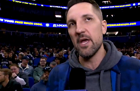 比赛的第一节,转播画面给到正在魔术主场观战,并接受采访的前NBA球员莱恩-安德森。