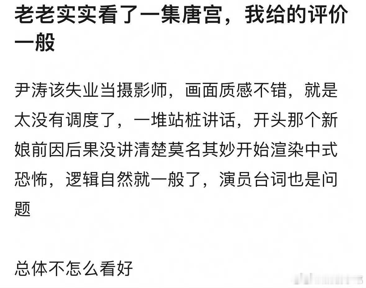 唐宫奇案开播各平台一片吐槽,首日播放量也平平,大多吐槽剧情无聊,主演台词不行,女