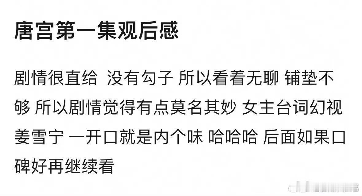 唐宫奇案开播各平台一片吐槽,首日播放量也平平,大多吐槽剧情无聊,主演台词不行,女二戏份多,站桩讲话,唐宫奇案首播口碑