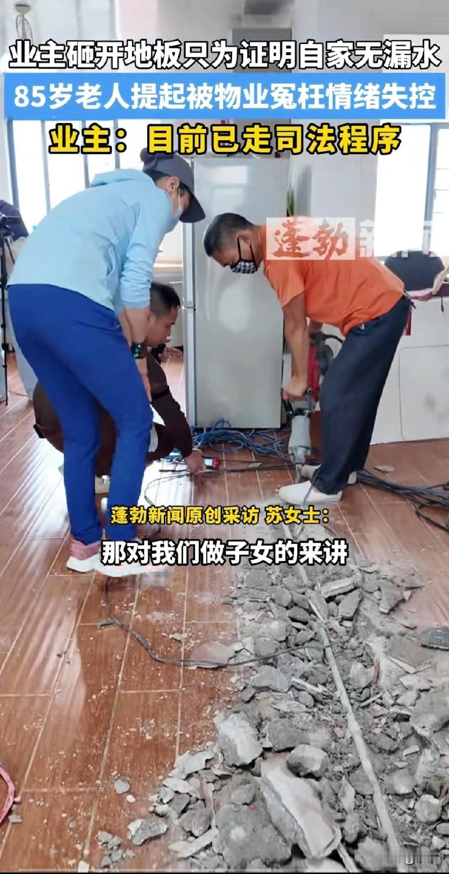 85岁老人被物业冤枉家中漏水,一气之下直接请来了施工队,将自己家的水管全部刨出来! 以此证明自己家没有漏水,这都是物业在推卸责任,明明是别人家自己的水管有问题,排查不出来原因,就冤枉他! 这位老人的女儿也对记者表示,自己的父亲是文化人,退休之后就没受过这委屈,与其花几万块钱给老人买补品! 不如帮老人证明清白,出口恶气,一家人都很支持这位老人的做法,施工团队迅速将地板全部掀了, 他的女儿表示这事之后肯定会把房子卖了,因为不想和这样的物业再打交道了,父亲的清白比什么都重要! 本来楼房漏水的问题就是个大难题,在没有检查清楚的情况下,就随意说别人家的水管漏了! 这不仅是物业推卸责任,更是加剧了邻里之间的矛盾,这样的物业真的让人很无语! 大家对于85岁老人为自证清白,直接将自己家水管全部薅出来这事怎么看? 海南物业 家装水管漏水 老房漏水