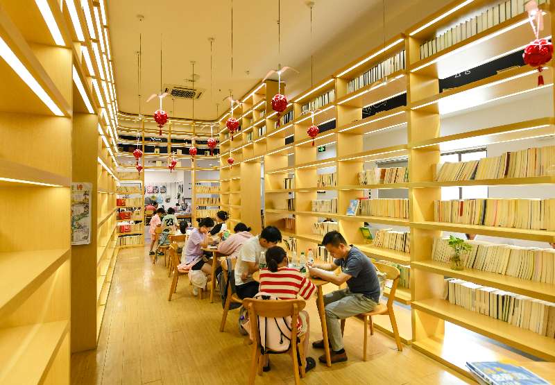 市民在城市阅读空间阅读。李晓雯/摄