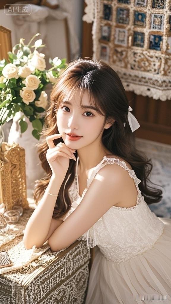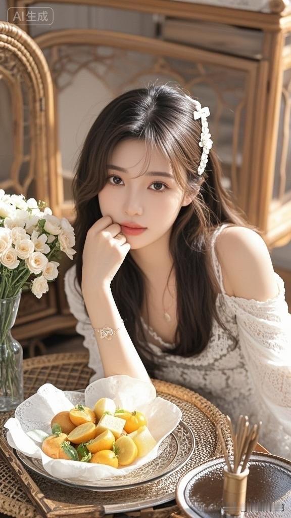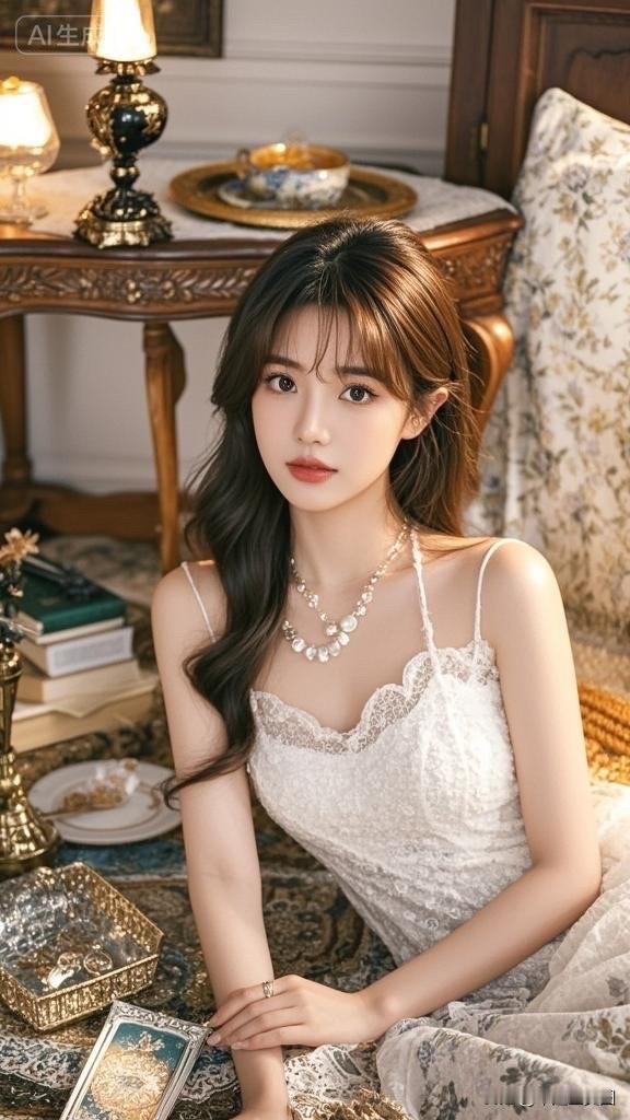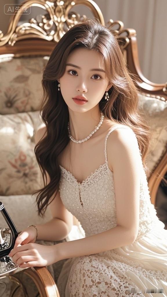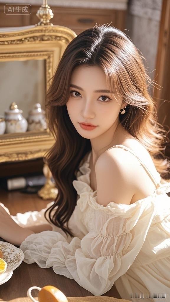 温柔甜美的少女,复古镜框前的优雅时光。