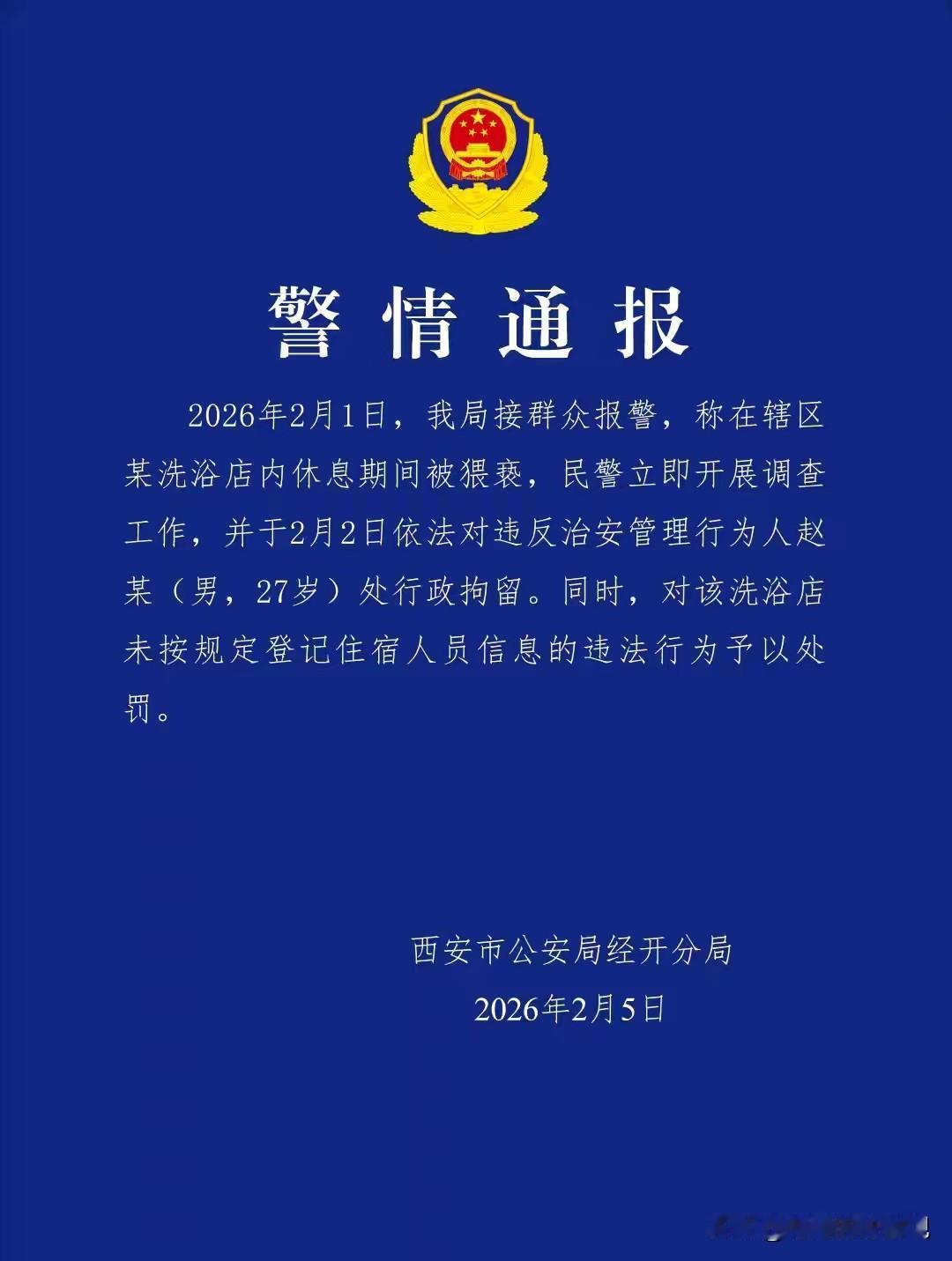 终于有结果了!陕西西安,男子一家3口,花1200元,去某洗浴中心娱乐。做完项目已是深夜,休息室睡满了人。一家3口只好去了2楼的电玩室,在地板上休息,当时那里睡了五六个人,男子凌晨睡醒后去大厅溜达,就这个功夫,一20多岁的男子,两次故意触碰男子妻子的脚,妻子认为被猥亵,警方介入立案。然而,洗浴中心的态度,让他们无法接受。 本来是带着家人出来娱乐放松一下,然而碰到这么恶心的事! 1月31日晚上9点多,刘先生一家三口,去某汤泉洗浴中心消费。 想着好好享受一下洗浴、搓澡、头疗这些服务,还能在那儿就餐、过夜。 他们买了1200元的套票,包含了所有体验的项目。 做完项目,已经是晚上11点半了,一家人来到休息室想休息一会儿。 那天客人特别多,休息室里睡满了人。 一家3口只好去了2楼的电玩室。 电玩室用木地板起了30多厘米高的台子,人就睡在上面,连个枕头和被子都没有。 当时已有五、六个人睡那儿,刘先生一家就在那里凑合着躺下。 凌晨1时前后,他们又去餐厅吃了点东西。 刘先生早上5点多就醒了,看到妻子孩子睡得正香,他觉得有点闷,就跑到大厅里溜达去了。 可他万万没想到,就在他离开的这段时间里,妻子遭遇了噩梦般的一幕。 早上7点,刘先生的手机接到妻子打来的电话。 电话那头,妻子的声音带着哭腔和惊恐:“你快回来!” 刘先生心里“咯噔”一下,赶紧往电玩室跑。 等他赶回去,看到一个20多岁的陌生男子,站在妻子跟前。 刘先生又气又急大声质问:“你干啥呢?” 那男子却一声不吭,刘先生又追问:“到底怎么了?”男子还是沉默不语。 过了两三分钟,孩子醒了,一家人来到大厅,妻子这才哭着告诉刘先生:“刚才那个人把她猥 亵了!” 刘先生一听,脑袋“嗡”的一下,怒火瞬间冲上头顶。 他立刻跑到电玩室门口,那男子还没走。 刘先生一把拦住他,大声斥责:“你必须说清楚,你到底干了什么!” 那男子却死不承认,还轻描淡写地说:“可能用腿碰了一下。” 刘先生哪里肯信,他大声说:“那就去调监控,看看你到底干了什么!” 可当他们来到前台,工作人员却冷冰冰地称,他没有资格查看监控。 刘先生又气又急,果断地拿出手机报了警。 刘先生的妻子称,大概清早6点多的时候,她正睡得迷迷糊糊,突然觉得有人在触碰她的脚。 一开始她还以为是自己的错觉,下意识地蹬了一下。 可没想到,对方竟然又触碰了一次。 妻子一下子就清醒了,又恶心又恐慌,想喊却又怕惊动孩子,只能强忍着。 直到刘先生回来,她才敢说出这件事。 报警后,民警很快来到了洗浴中心现场。 他们调取了监控视频,病开始调查。 刘先生心里很不舒服,从做完笔录到离开,洗浴中心负责人,和工作人员,连一句解释、一个道歉都没有! 发生了这种事,他们难道不知道,将给顾客带来多大的心理阴影吗? 这还是一个服务行业该有的态度吗? 2月2日下午,记者来到洗浴中心调查。 工作人员说要联系负责人,过了一会儿称,领导在外开会,店里不接受采访。 当记者问2楼有没有电玩区时,工作人员回答有。 记者在大厅门口的展示屏上看到了宾客须知。 洗浴中心24小时营业,规定凌晨2:00—6:00之间,在店内过夜的贵宾,加收30元/人过夜费。 并且,过夜人员须登记身份证信息。 刘先生却称,他们买套票的时候,根本没加收过夜费,也没人要求登记他们的身份证信息。 这说明,洗浴中心的管理非常混乱。 记者了解到,警方以猥 亵案正式立案了。 这件事后,刘先生妻子心里留下了阴影。 刘先生觉得,洗浴中心作为公共场所,有保障顾客人身安全,和财物安全的责任和义务。 休息场所内,发生这样的事,当时根本没见工作人员巡视。 而且,事后无论是店家,还是服务人员,没有慰问、安抚、更没有道歉。 《民法典》第1198条:宾馆……公共场所的经营者、管理者或者群众活动的组织者,未尽到安全保障义务,造成他人损害的,应当承担侵权责任。 洗浴中心作为经营场所,顾客花钱购买服务,就与洗浴中心形成了消费服务关系。 洗浴中心有义务保障顾客在其场所内的人身安全。 然而,该洗浴中心在休息室满员的情况下,让顾客在无完善设施的电玩室休息。 且未安排工作人员巡视,未能及时发现和制止猥亵行为,事后也未对顾客进行慰问安抚,明显未尽到安全保障义务。 27岁赵某两次触碰刘先生妻子的脚,这种行为属于对他人的猥 亵。 《治安管理处罚法》第44条规定:猥亵他人的,处5日以上10日一下拘留。 赵某虽然没有使用暴力等强制手段,但在公共场所对他人身体进行不当触碰,违背了他人意愿,侵犯了他人的人格尊严和人身权利。 最终,警方于2月2日,对违反治安管理行为的27岁男子赵某,处行政拘留。 同时,对该洗浴店未按规定登记住宿人员信息的违法行为予以处罚。 对此你怎么看?