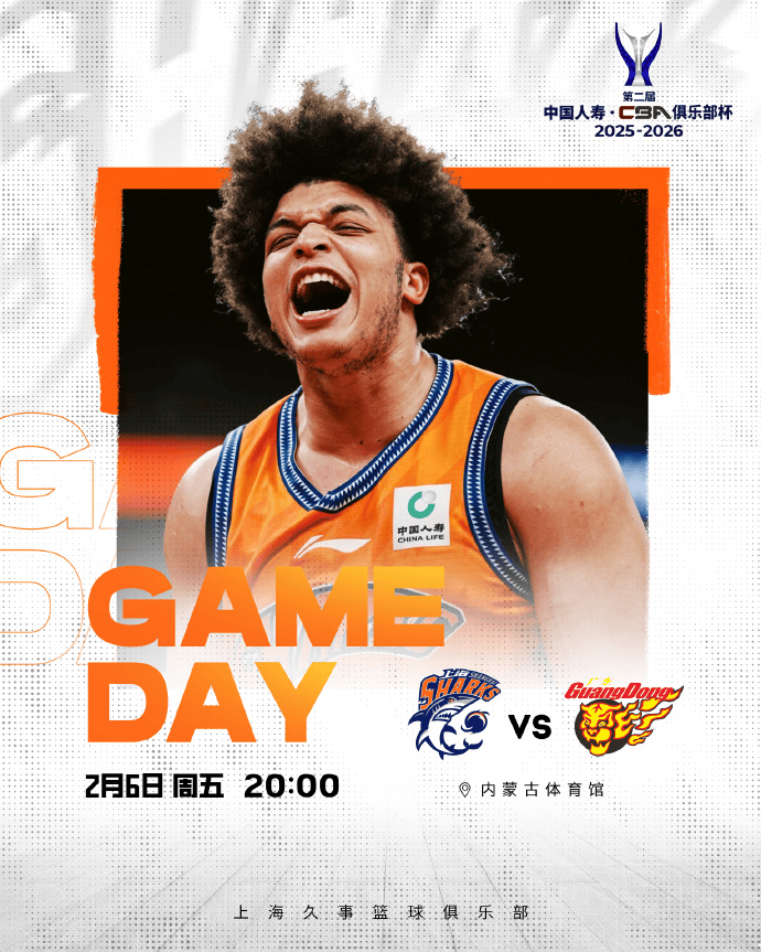 赛前,上海男篮分享赛事预告:球队将于今日对阵广东男篮。