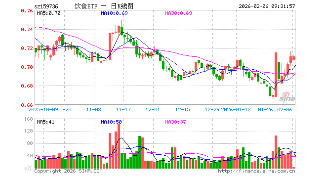 2月6日,食品饮料ETF天弘(159736)开盘跌0.56%,报0.707元。食品饮料ETF天弘(159736)重仓股方面,伊利股份开盘涨0.11%,贵州茅台涨0.00%,五粮液涨0.01%,泸州老窖涨0.02%,山西汾酒跌0.37%,海天味业跌0.16%,东鹏饮料跌0.73%,洋河股份跌0.50%,双汇发展跌0.41%,安琪酵母涨0.00%。