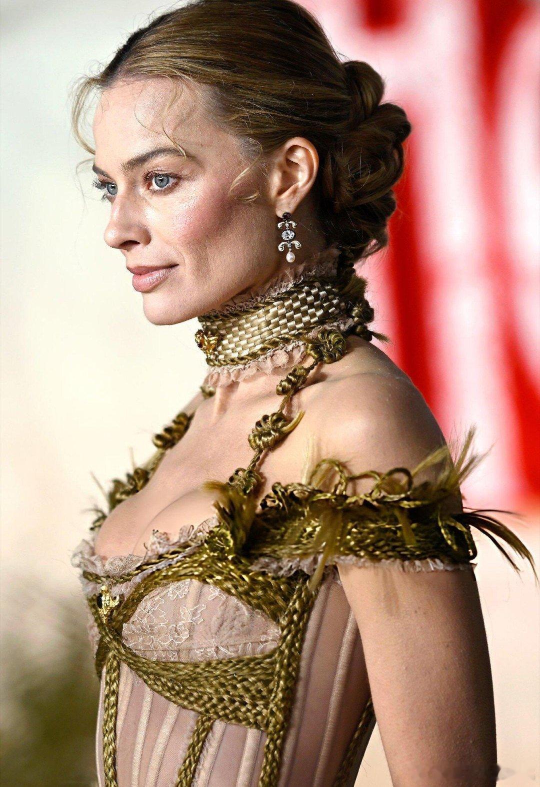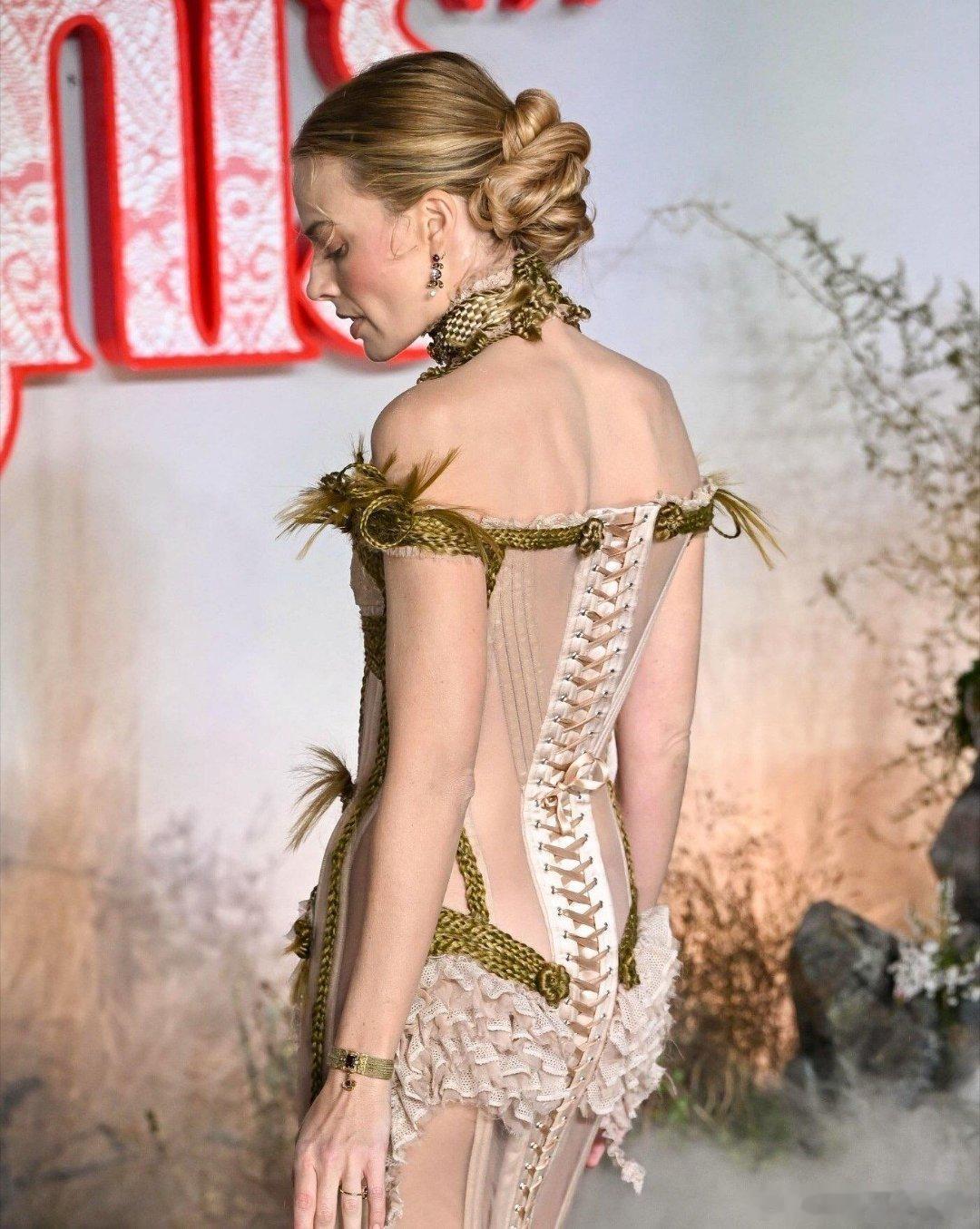 罗比的时装秀又来了,今日出席《呼啸山庄》伦敦首映礼造型,上身了由Dilara Findikoglu 特别定制的礼服,灵感来源于品牌 2025 秋冬系列的藤编裙,跟旁边的景完美结合,又是完整的一套封神造型!时尚灵感解读