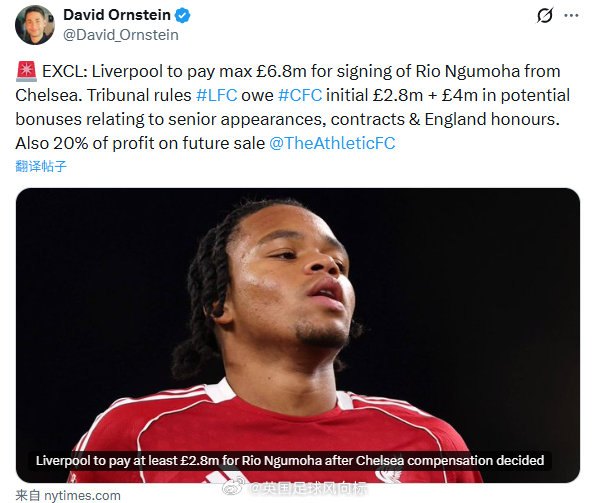 经过一年多的诉讼,仲裁法庭终于作出裁决:利物浦需要向切尔西支付280万英镑的初始费用,未来根据球员在一线队的出场次数、合同续签情况、以及代表英格兰队出场的次数,支付最多400万英镑的潜在奖金,总额680万英镑封顶。另外,未来如果恩古莫拉转会,利物浦还需要向切尔西支付20%的转会利润。