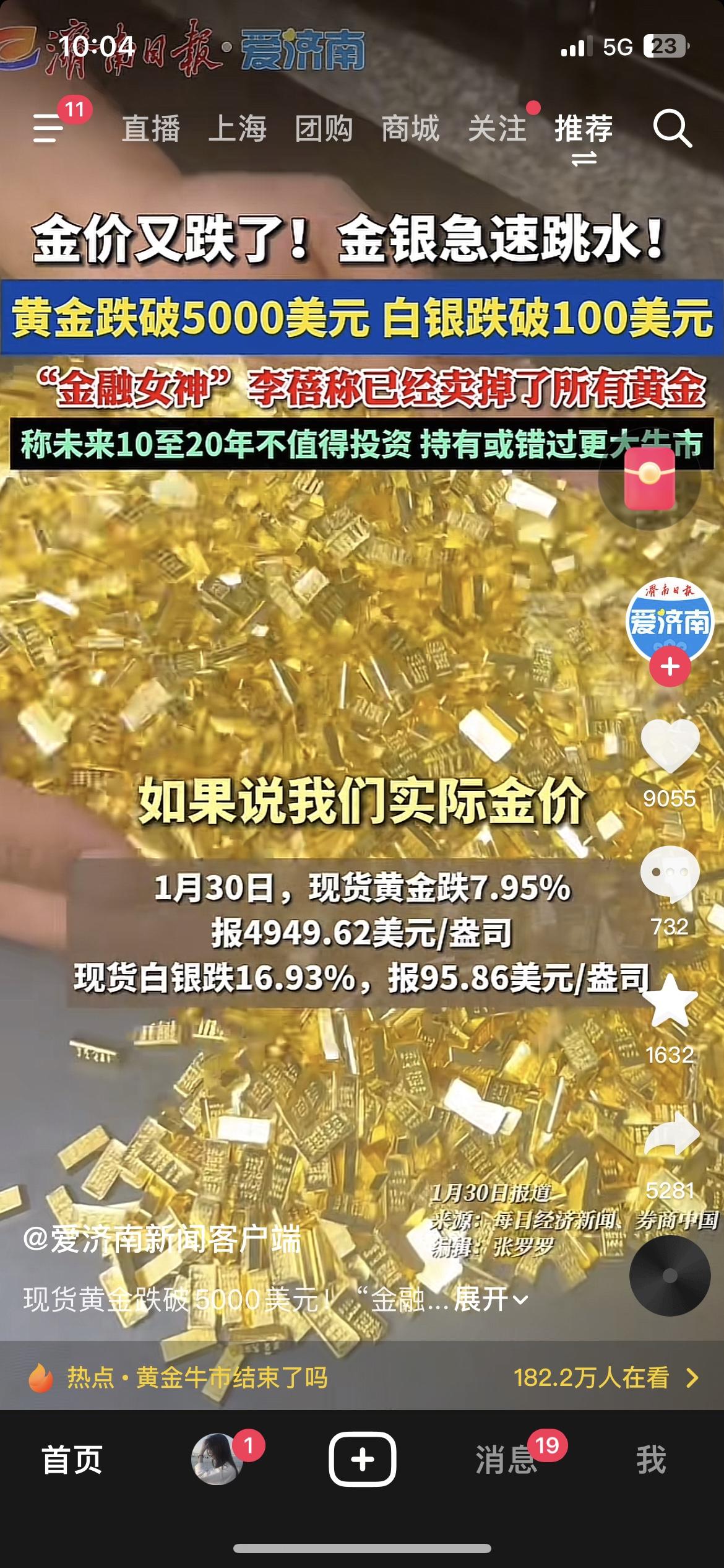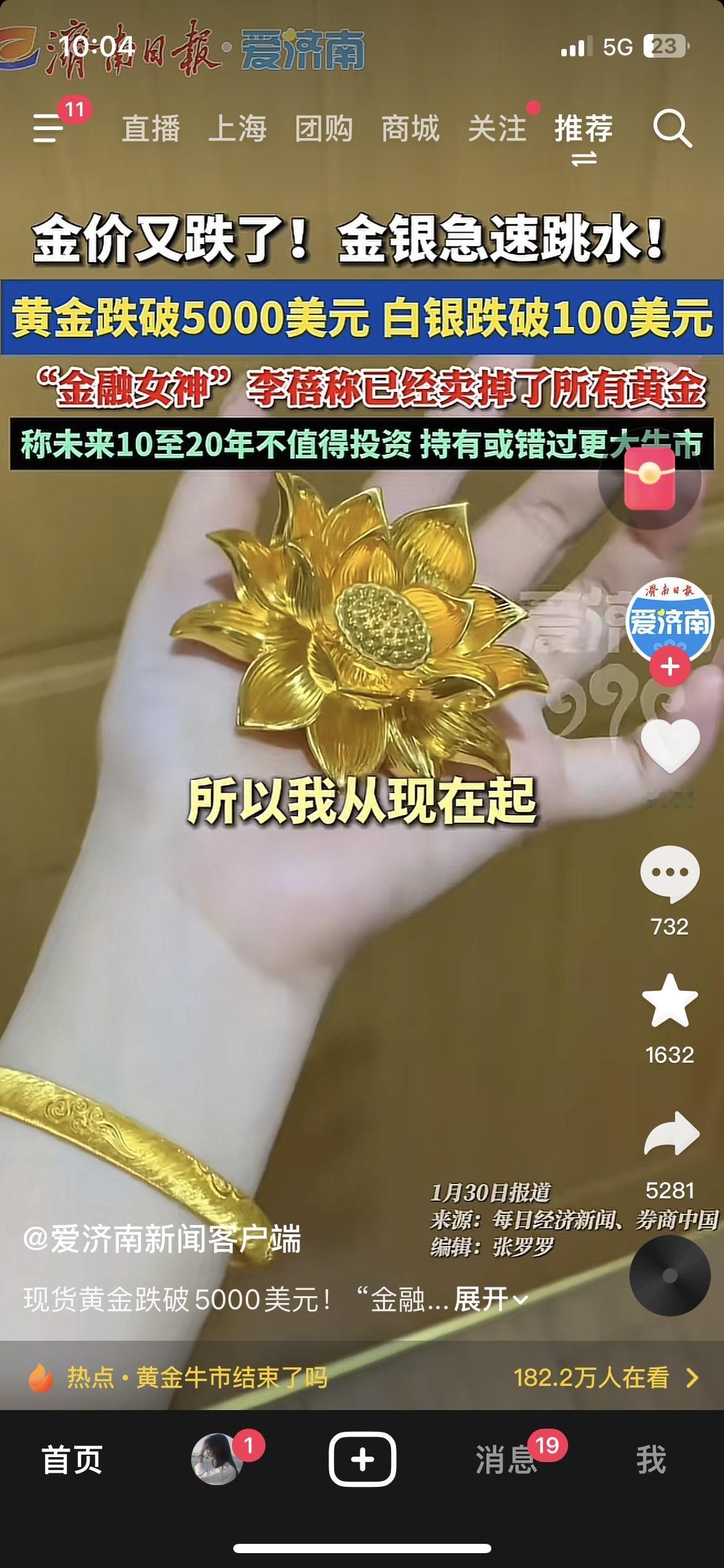 黄金崩了!李蓓1月底清仓后精准踩中暴跌!长期看好却反手卖出,她到底在怕什么? 1月30日清仓所有黄金,随后黄金先小幅反弹再暴跌,白银单日跌超8%!李蓓说“未来10-20年不值得投资”,不是看空黄金本身,是觉得估值太高+有更优资产——AI科技股吸金效应太强,资金从避险资产流向高成长赛道,黄金短期泡沫太明显。 别追涨杀跌,ETF才是普通人抗波动的安全垫。 你会趁跌加仓金银ETF,还是等反弹再入手? 黄金理财 财经热点