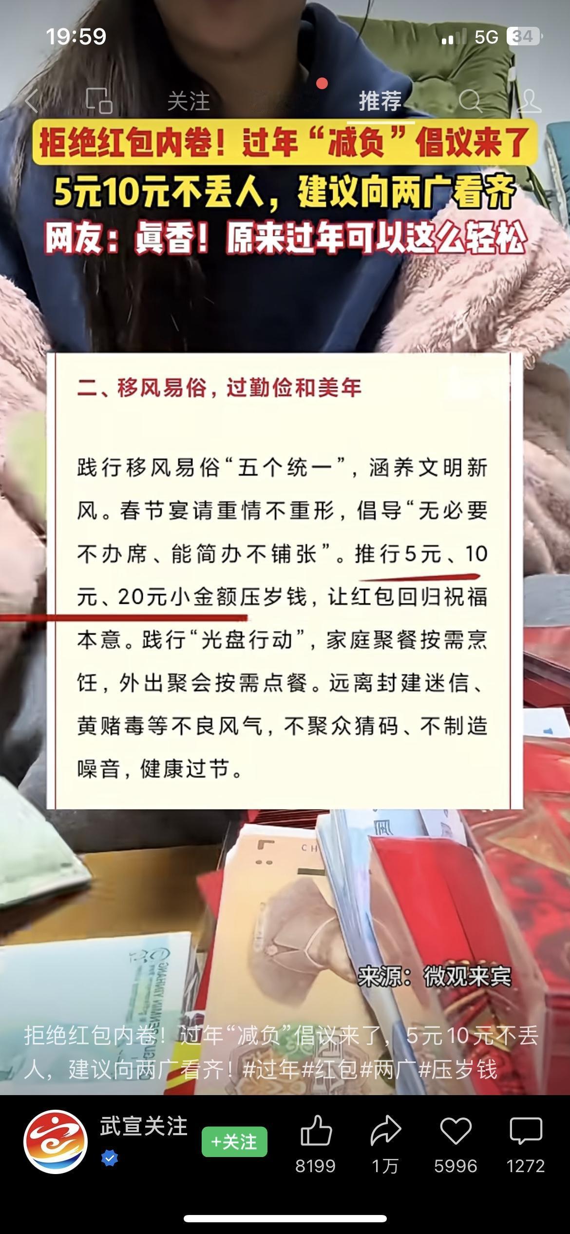 别再卷红包了!5元10元不丢人! 最近全网倡议拒绝红包内卷,推崇小金额压岁钱,还点名学习两广“讲心不讲金”的习俗,红包只图吉利不拼金额。过年本该轻松团圆,别让红包变成经济负担,祝福从来和金额无关,心意到位就足够。 你家过年红包会按「亲属价」给吗? 过年红包 民生热点 拒绝内卷礼压岁钱