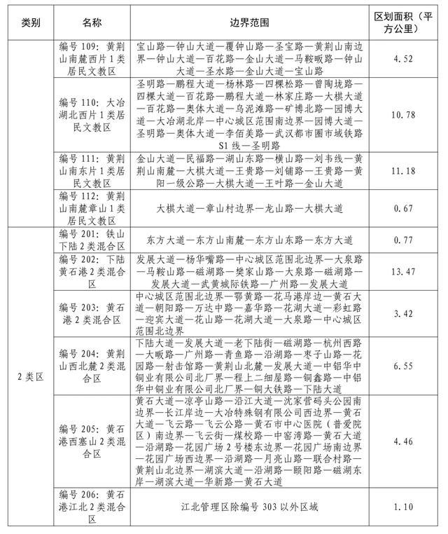 《黄石市城区声环境功能区