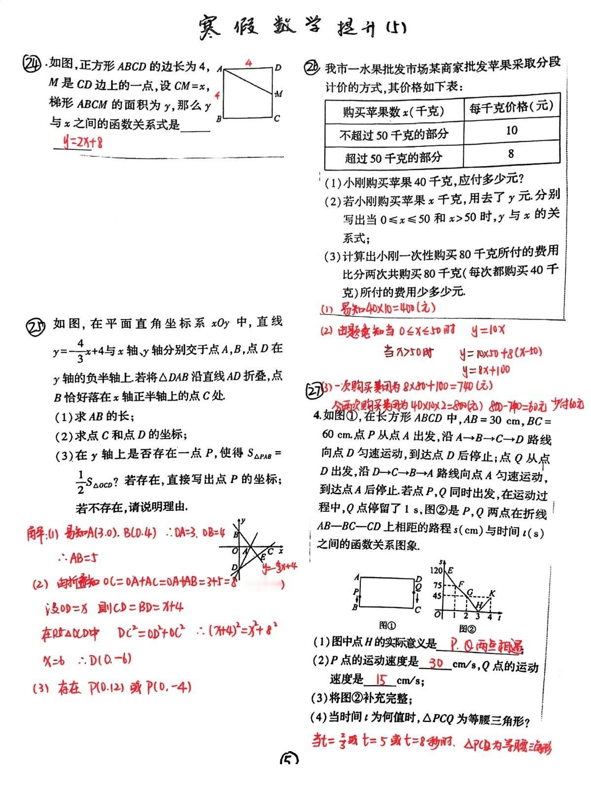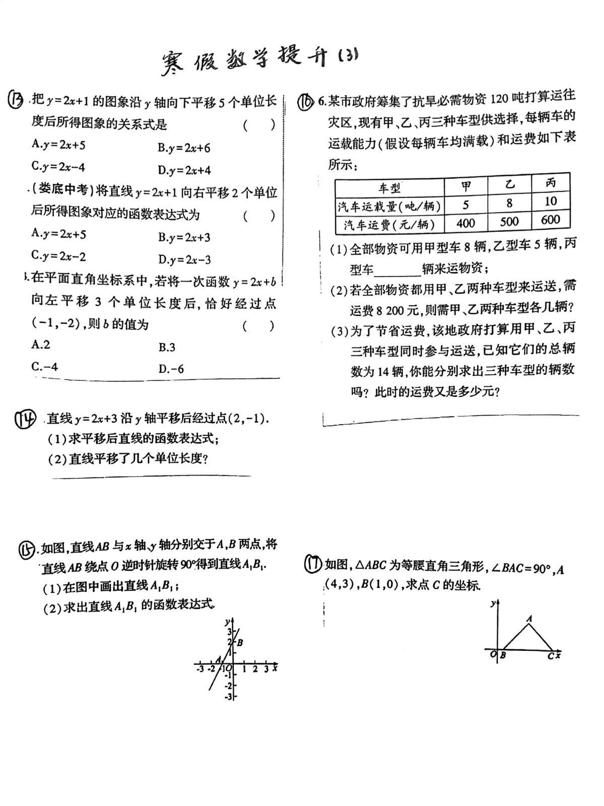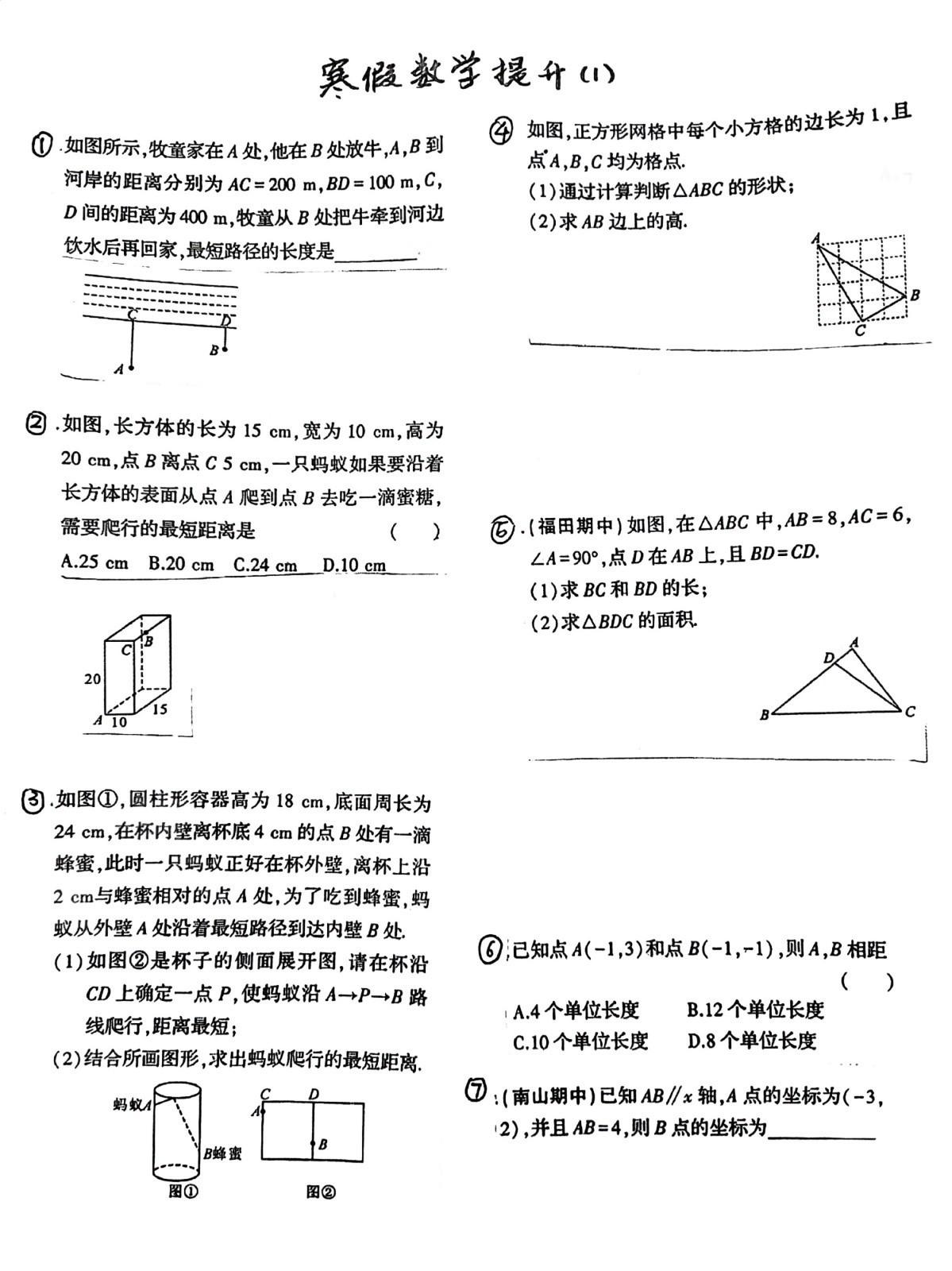 [途虫数学]八年级数学寒假精品题,适合数学基础中等偏上的学生,后面有题目可打印,