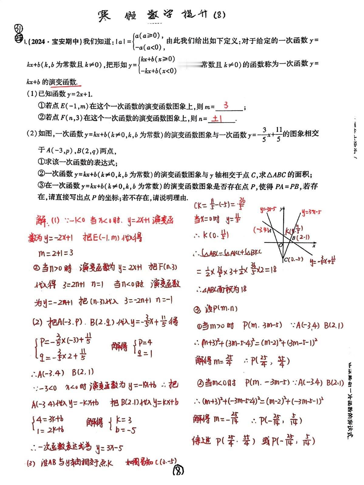 寒假数学好题分享。初中数学八年级上册经典压轴题分享,附有详细的手写答