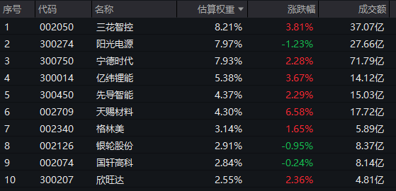 [电池ETF汇添富(159796)标的指数前十大成分股]