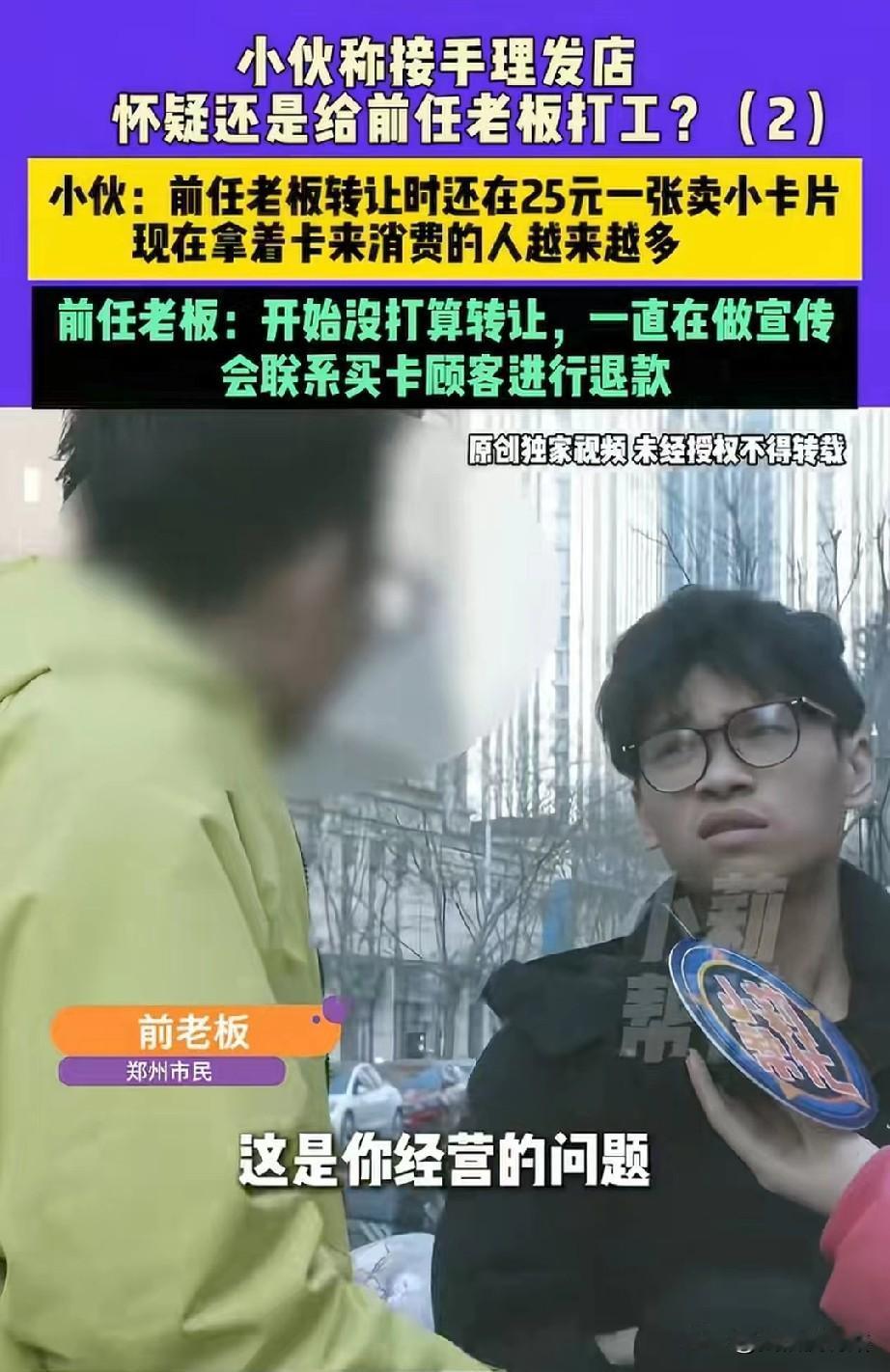 太坑了!河南郑州,男子花3万元接手了一家理发店,才干了三四天,就发现每天至少十几个顾客拿着一张小卡片上门理发,卡片上写着:25元洗剪吹2次,还能做造型。原来,这张卡片是前一任老板为了搞宣传,25块钱一张卖出去,好多人觉得便宜,囤了不老少。男子瞬间懵了,自己每天忙的脚不沾地,却一毛钱没挣,免费给上一任老板打工。他咽不下这口气,找到对方讨要说法。 郑州的冬天确实冷,但让理发师牛先生心里更凉的,是店里那台只会干活不见进账的收银机。 几天前,牛先生看着满地的碎发,心里本该是高兴的,毕竟对于一家刚开业的理发店来说,客流就是钱流。 可现实却狠狠给了他一巴掌:忙活了一整天,剪刀都快磨出火星子了,收银系统的入账金额却是刺眼的“0.00”。 进来的顾客不少,可到了结账的时候,大家既不掏现金也不扫码,而是整齐划一地掏出一张红色的小卡片。 这张卡片,成了牛先生的噩梦,事情得从1月26日说起,那时候牛先生正满怀憧憬地寻找创业机会。 一通电话让他觉得自己捡到了宝:一家地段不错、装修还没过时的理发店急着转让,对方表现得很诚恳,急于脱手,牛先生也没多想,觉得这是个大展拳脚的好机会。 仅仅过了两天,也就是1月28日,双方就迅速敲定了合同,牛先生爽快地支付了三万块钱转让费,想着马上就能开门迎客,赚个盆满钵满。 而等到正式开业三四天后,牛先生才发现,自己掉进了一个精心设计的“坑”里。 那些顾客手里挥舞的红色卡片,根本不是什么正常的促销券,而是一张足以把店搞垮的“廉价卖身契”。 卡片上写得清清楚楚:25块钱,包含两次洗剪吹,甚至还能做造型,这价格放在现在的市场上,别说人工费了,就连水电和洗发水的成本都裹不住。 也就是说,前任老板把未来的服务,以极低的价格提前变现,钱揣进了自己兜里,然后把需要兑现的“免费劳动力”,甩给了不知情的牛先生。 更让牛先生感到气愤和后怕的,是这背后的时间线,就在1月28日他忙着签合同、交那三万块钱转让费的当天晚上,前任老板居然还安排了地推人员,在附近疯狂扫楼卖卡。 这分明是打了一个时间差,赶在交接前的最后几小时,把店铺周边的潜在客户,透支得干干净净。 面对找上门的顾客,牛先生陷入了两难,认账吧,这就是在做慈善,每剪一个头都是在赔钱;不认账吧,店才刚开业,周围邻居要是闹起来,口碑瞬间就臭了,以后还怎么做生意? 他试图联系前任老板要个说法,对方却玩起了“消失”,偶尔回个信息也是阴阳怪气,甚至反咬一口说牛先生“经营不善”。 这哪是经营问题,这分明就是给老实人下套,前任老板这一招“金蝉脱壳”,算准了牛先生耗不起打官司的时间和精力。 毕竟店还要开,房租还得交,走法律程序虽然大概率能赢,根据相关法规,可以定性为欺诈并撤销合同,但等到判决下来,这店恐怕早就黄了。 无奈之下,牛先生只能求助于媒体,只有当摄像机架在面前,事情闹大了,那位一直躲在幕后的前任老板才终于肯露面,经过一番拉锯,对方最终同意把那25块钱的购卡费退还给顾客。 看着前任老板退款给顾客的场景,牛先生心里五味杂陈,虽然表面上看,他甩掉了这个必须免费干活的包袱,但这几天被折腾得心力交瘁,店铺开业原本该有的喜庆氛围,被冲得一干二净。 更重要的是,那些因为退款,而对店铺产生怀疑的顾客,可能再也不会踏进这个门了,这些隐形的损失,没人会赔偿给他。 这场风波虽然暂时平息,却给所有想接手实体店的人上了一堂昂贵的课:在签字交钱之前,千万别只看装修和地段,一定要把会员系统的底账查个底朝天。 因为你永远不知道,前任老板在离开前,是不是已经把这家店未来的“血”都提前抽干了。 现在,牛先生还得收拾好心情,在一地鸡毛中重新拿起剪刀,毕竟生活还得继续,只是这信任一旦被割伤,比头发难长多了。