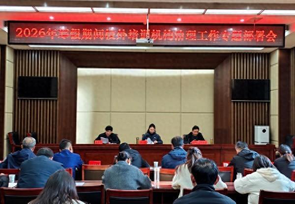 会上,县教体局、文旅局、科技局、市场监管局、消防救援大队分别就相关领域治理工作进行了具体部署。徐润青在主持会议时提醒,各单位要抓住2026年寒假这一关键时段,扎实推进校外培训机构治理,重点规范预收费管理,并时刻关注相关舆情动态。