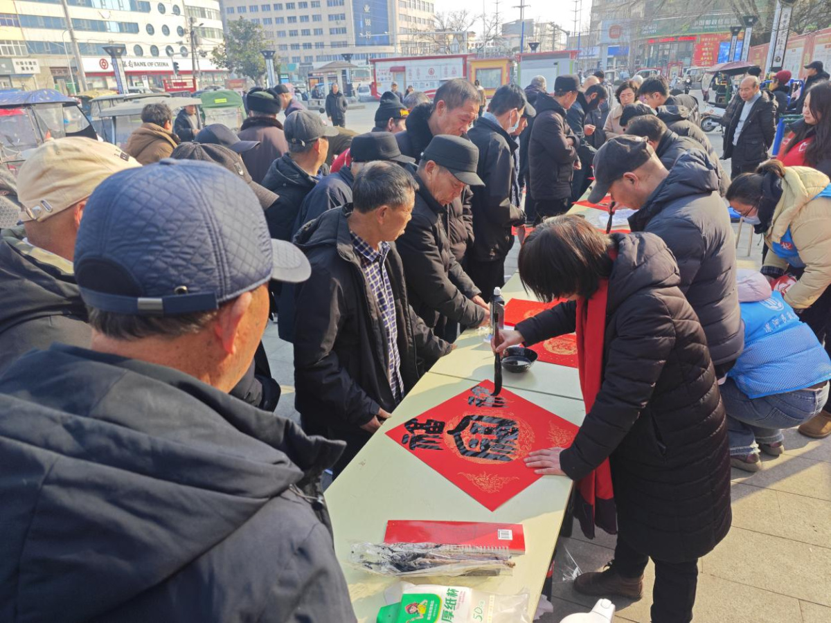 “手写的春联就是不一样,墨香里都是人情味!”往来群众闻讯纷纷驻足,一边欣赏书法老师们的笔墨风采,一边挑选心仪的春联。志愿者们穿梭其间,主动递上春联、送上问候,将一幅幅带着墨香的春联,连同一声声真挚的“新年好”,免费送到来往群众手中,拿到春联的群众脸上洋溢着幸福的笑容,现场暖意融融。
