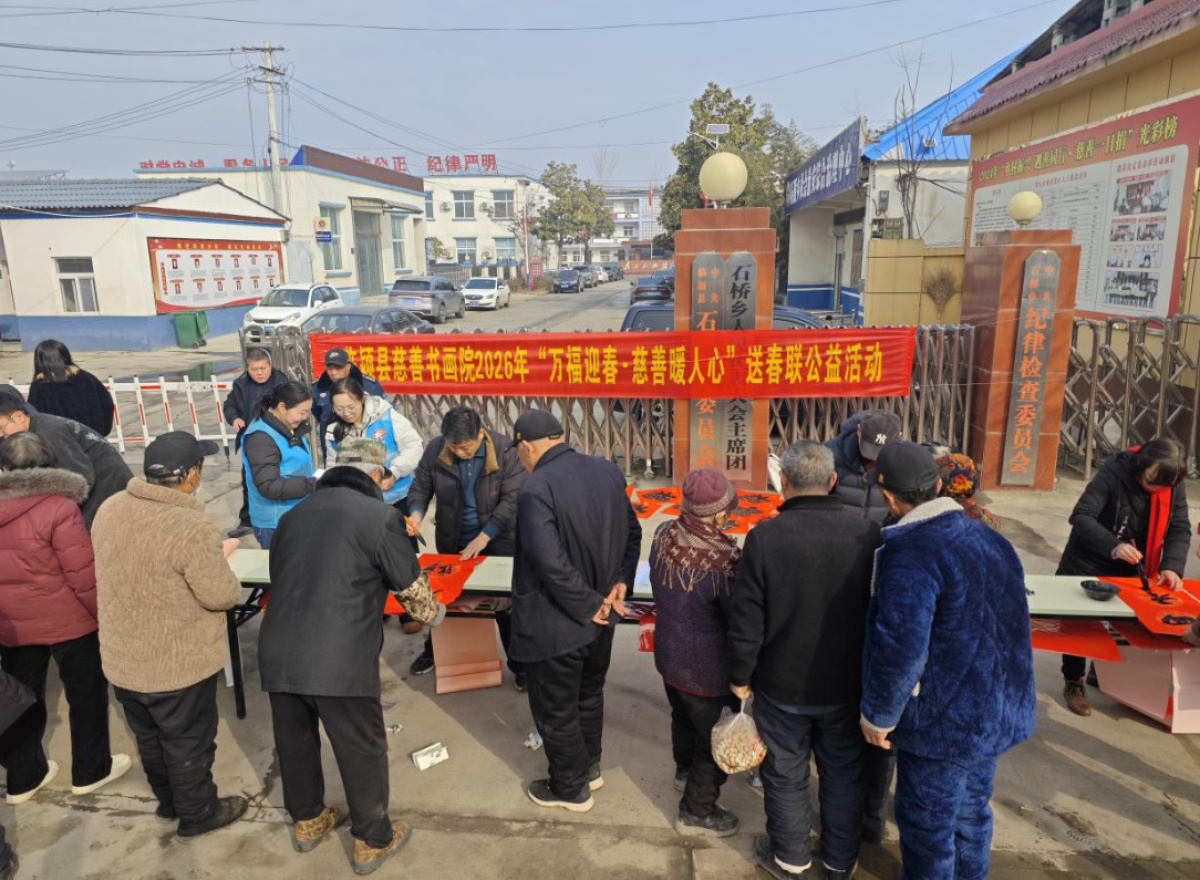 为弘扬中华优秀传统文化,传递慈善温度,营造祥和的节日氛围,近日,漯河市临颍县慈善书画院先后走进石桥乡、窝城镇、金龙广场、行政服务中心、巨陵镇娄庄村等多地,开展2026年“万福迎春慈善暖人心”送春联慈善公益活动。县慈善书画院院长崔刚山、秘书长周俊峰带领书法老师们亲临现场,挥毫泼墨,为群众送上手写春联和新春祝福。