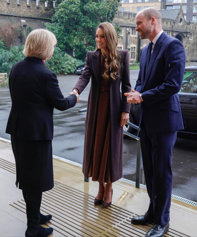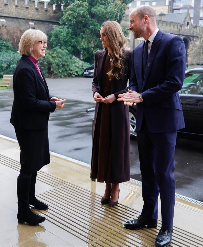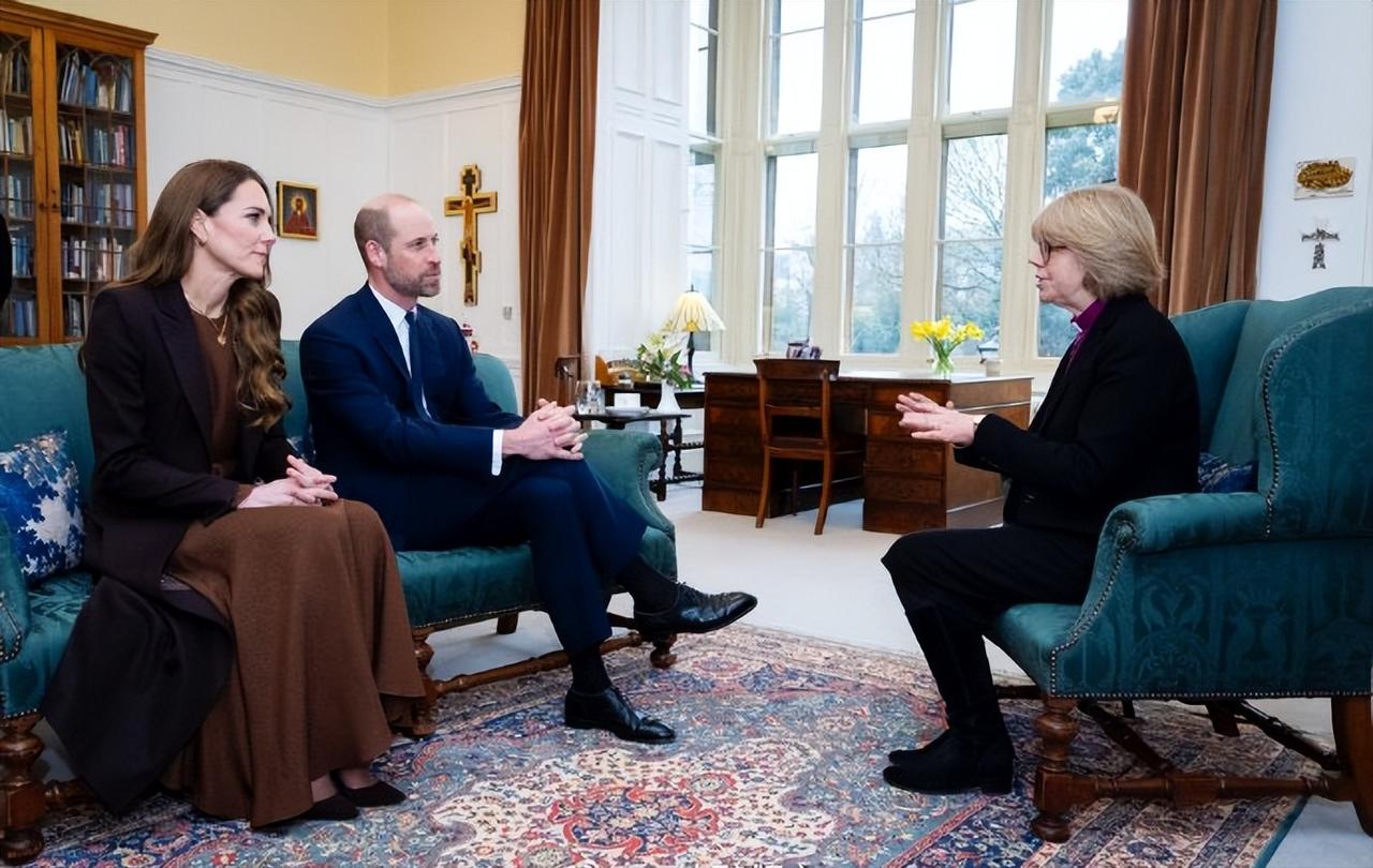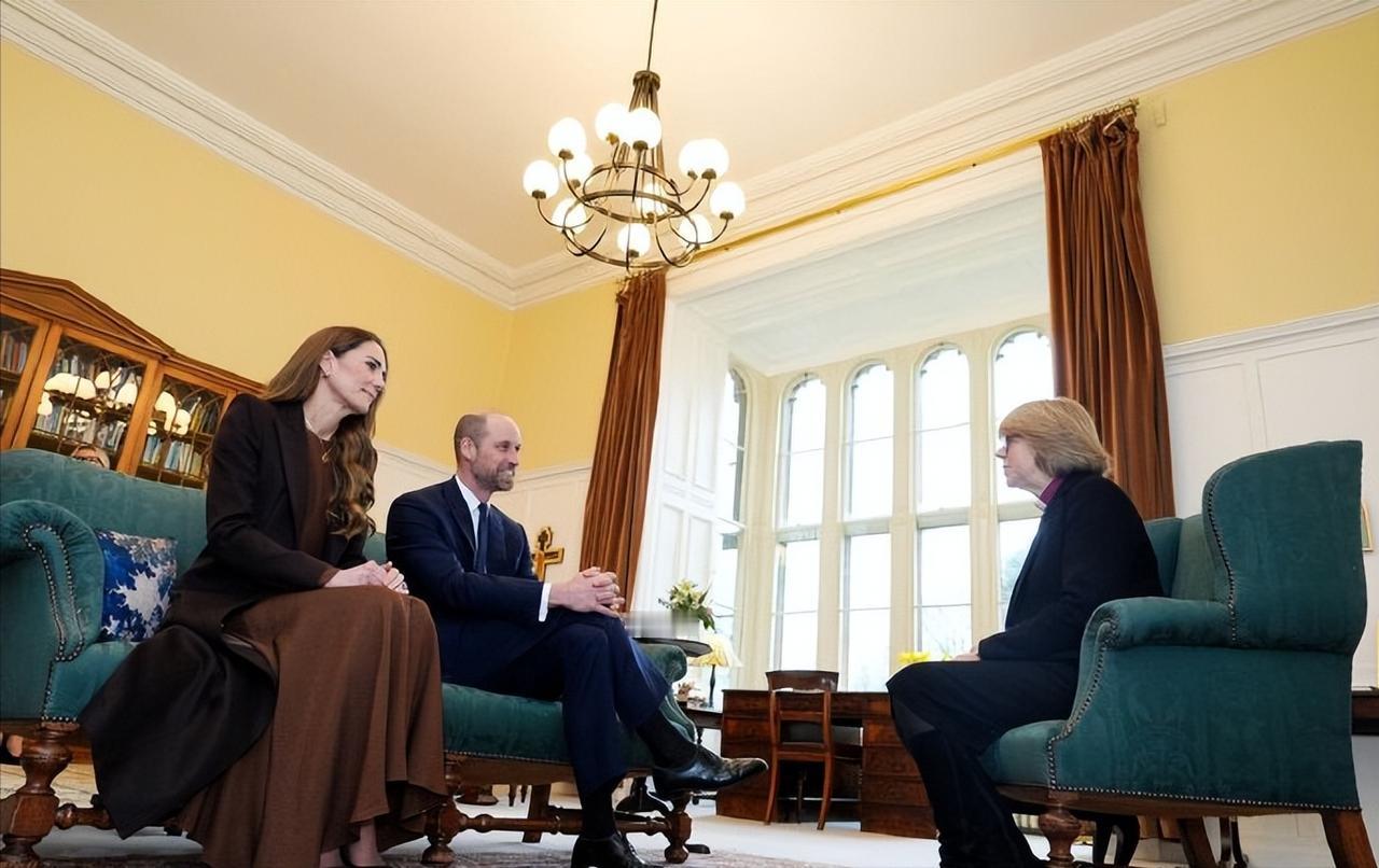 威廉凯特合体营业! 2月5日,威廉王储与妻子凯特王妃一同来到了坎特伯雷大主教在伦敦的官方居所贝斯宫,拜访新任坎特伯雷大主教Sarah Mullally女爵。 凯特王妃全新造型再次把人惊艳到了,咖色针织长裙,外搭咖色羊毛呢外套。 发现了吗?凯特王妃在造型的颜色搭配上,偏爱简单的配色,而且颜色都非常统一,单色系的颜色更是常态,虽然配色简单,但是简约而不简单,却也显得优雅端庄。 威廉坐在椅子上,翘着二郎腿,整个人松弛感满满。 对比之下,凯特王妃即便坐着,依旧身姿挺拔,时刻保持着王储妃的仪态万千!